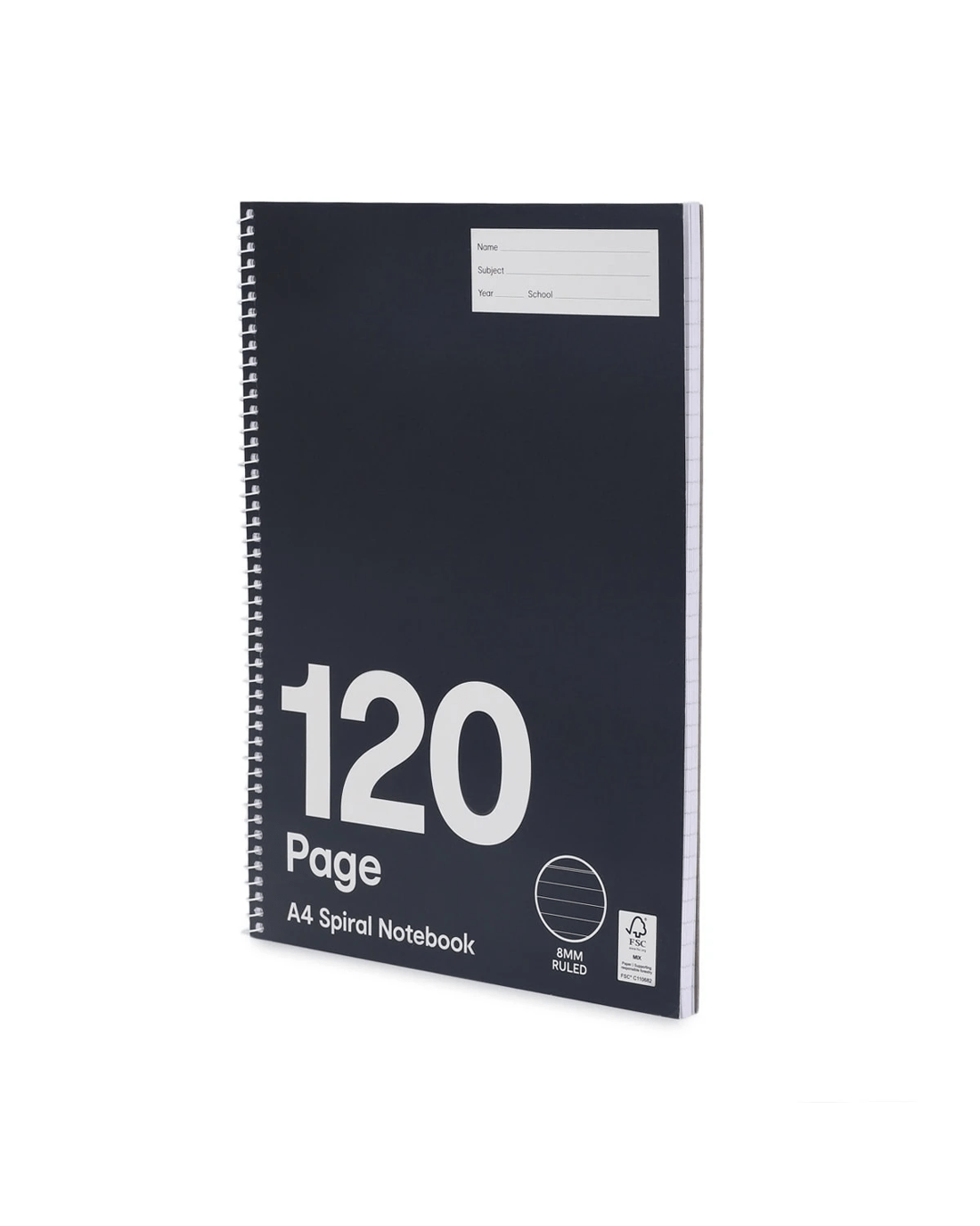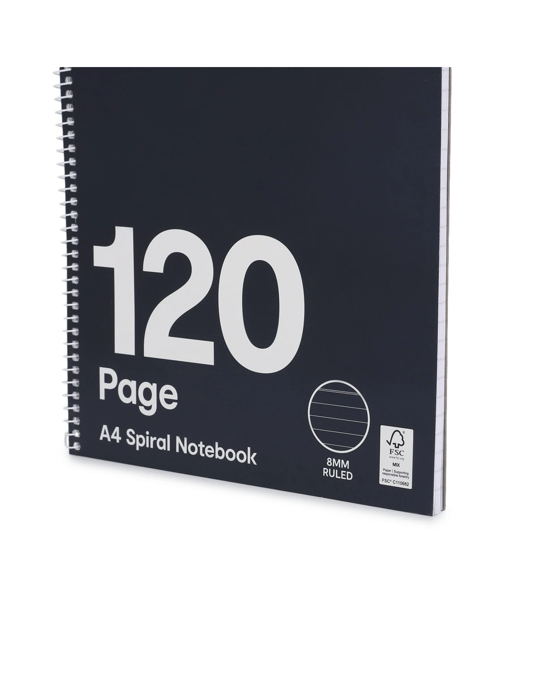 5 Pack 120 Page A4 Spiral Notebook - Black