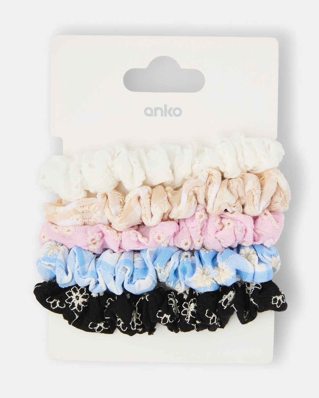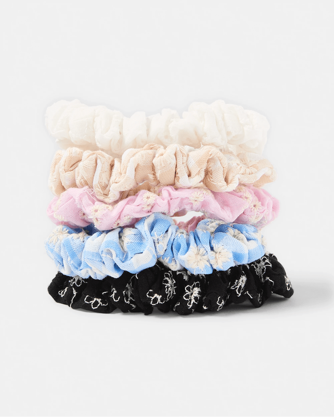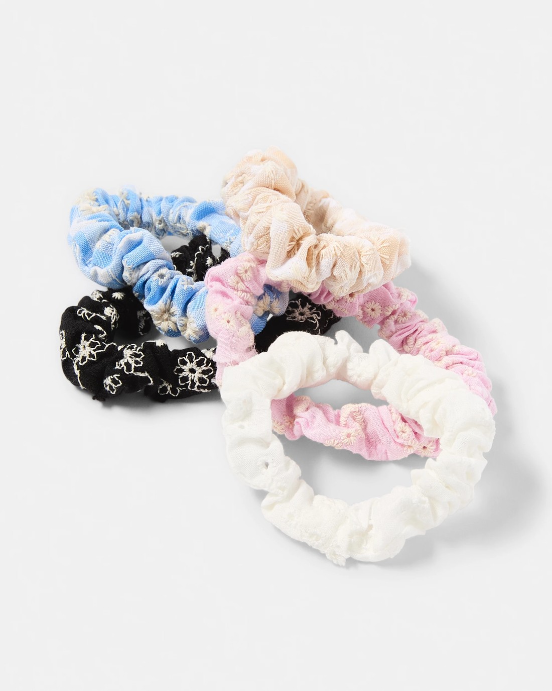 5 Pack Embroidered Mini Flower Hair Scrunchies
