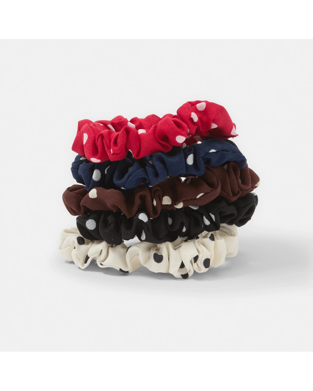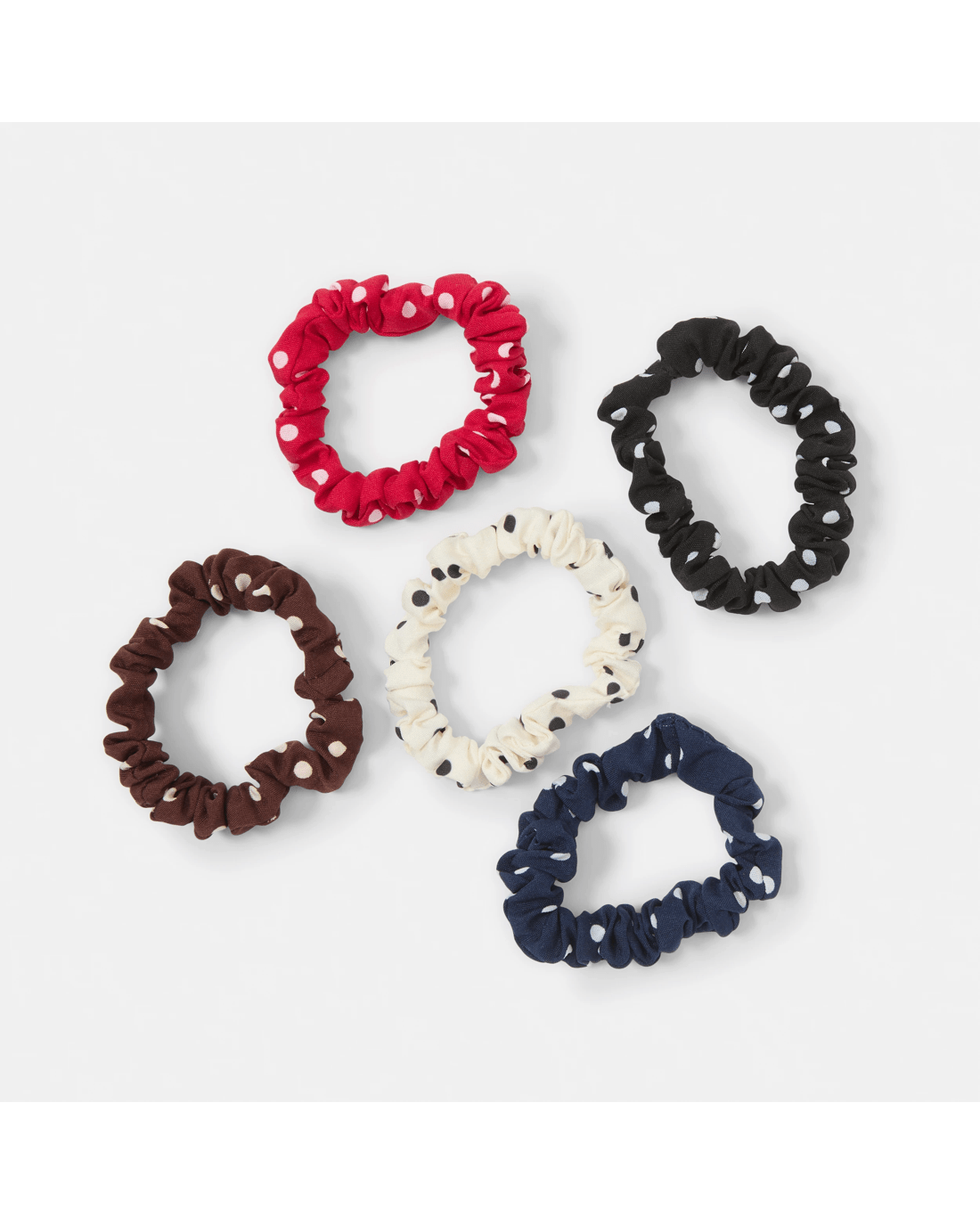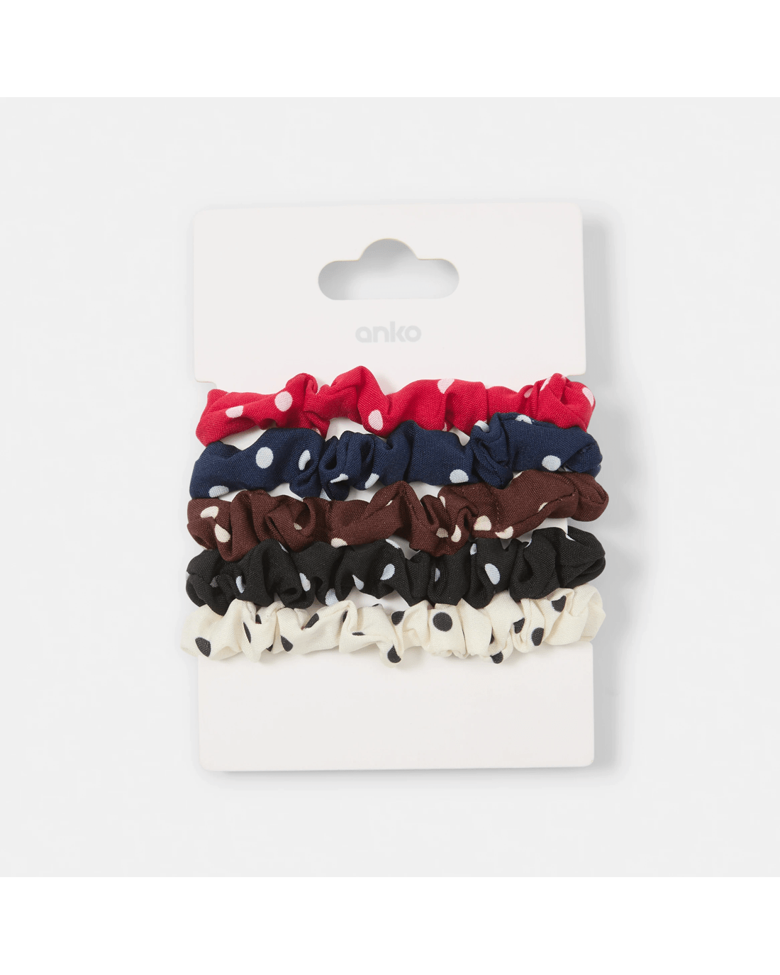 Amp up your hair game with this 5 Pack Polka Dot Mini Hair Scrunchies. Cute, colourful and gentle on hair, they're perfect for everyday styling.