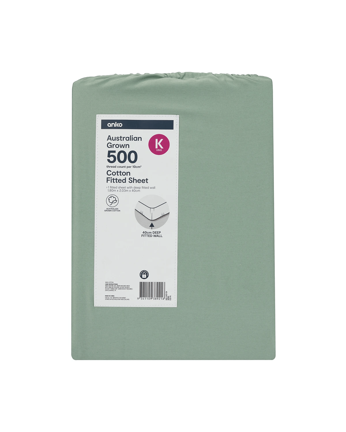 500 Thread Count Australian Grown Cotton Fitted Sheet - King Bed, Sage