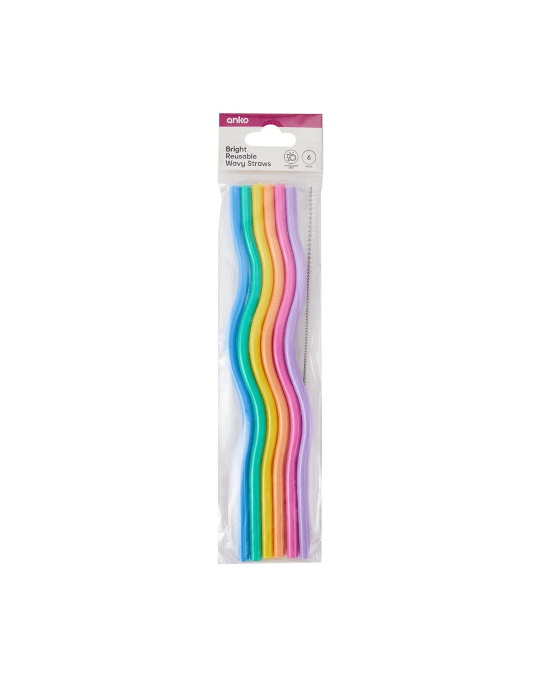 6 Piece Bright Reusable Wavy Straws