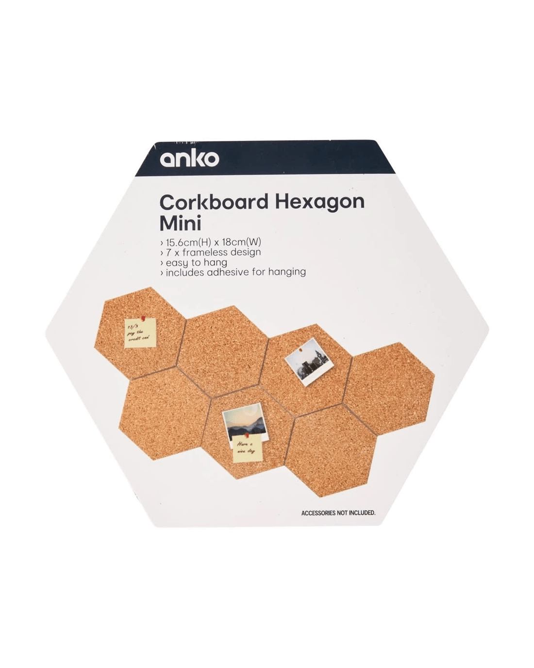 Add function and style to any wall with these Seven Mini Corkboard Hexagons. Ideal for pinning notes, photos or to-do lists, they’re perfect for organising your space with a creative, customisable layout.