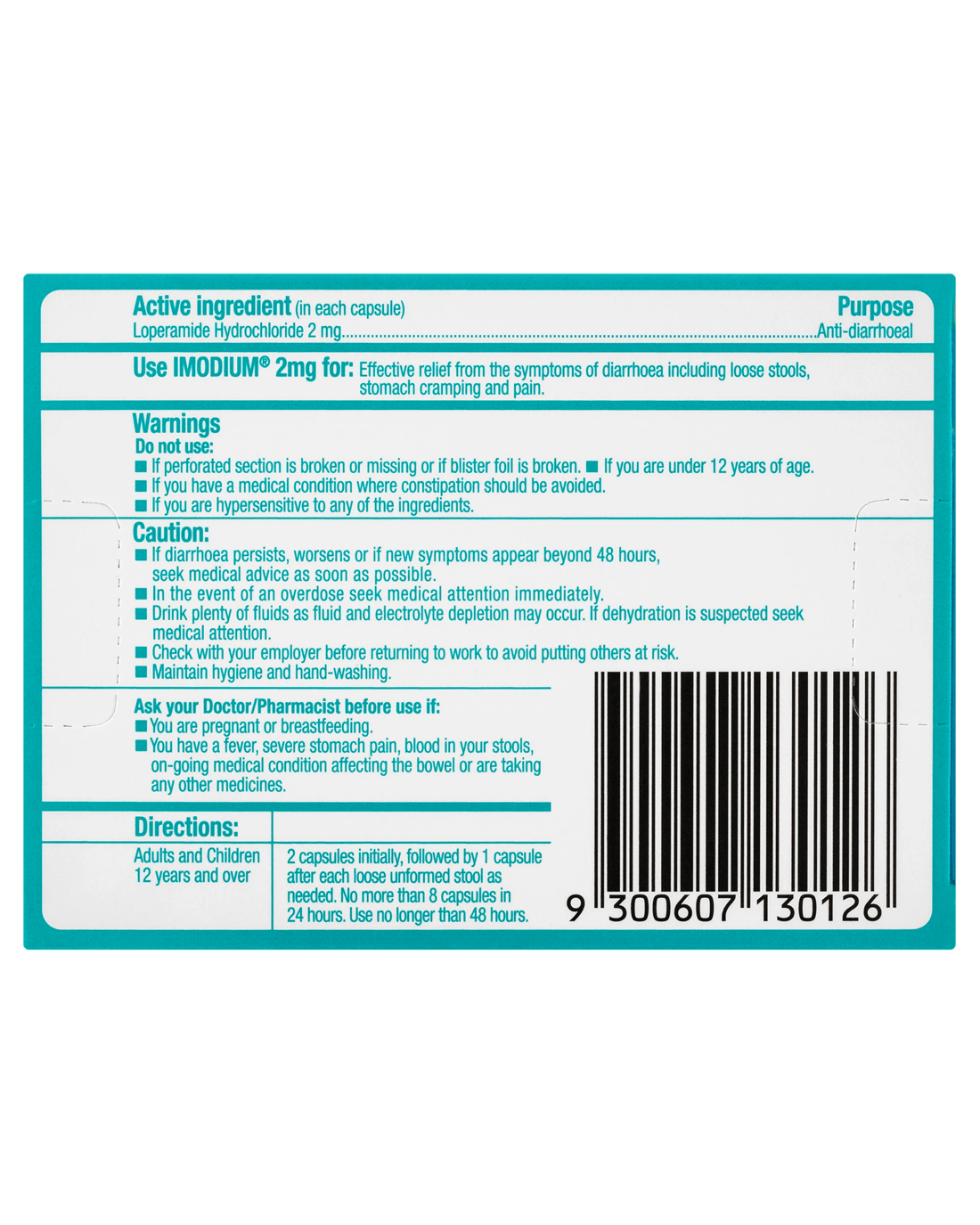 Caution: If diarrhoea persists, worsens or if new symptoms appear beyond 48 hours, seek medical advice as soon as possible. In the event of an overdose seek medical attention immediately. Follow usage instructions carefully.