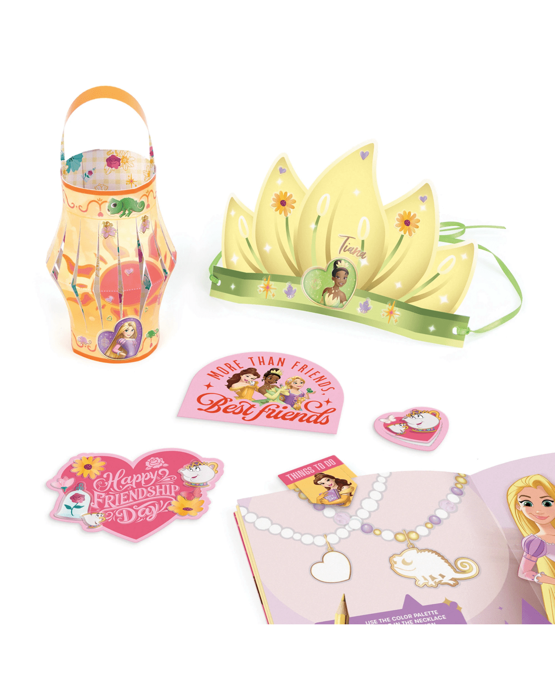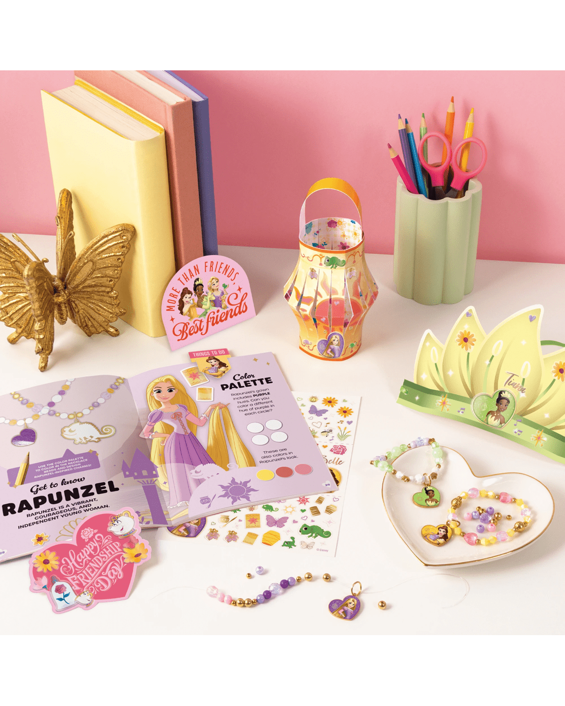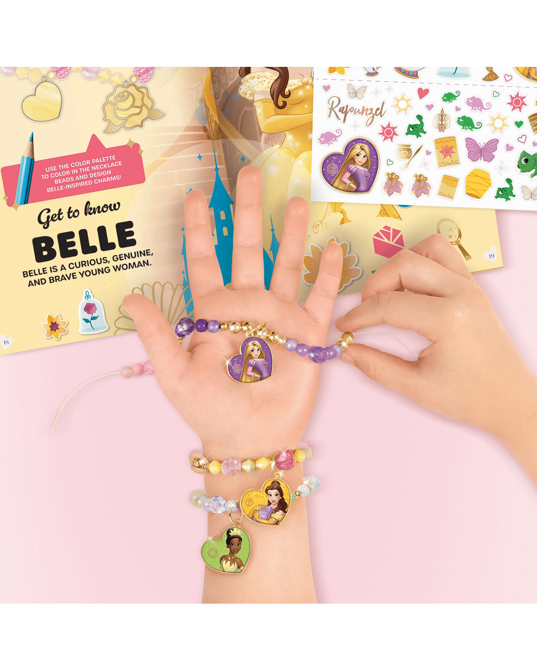 A new collection of hands-on activities for fans of Disney Princesses Rapunzel, Tiana and Belle! Kids can read about colour theory, create rewarding papercraft projects and make a beaded charm bracelet inspired by each princesses' signature colour palette!