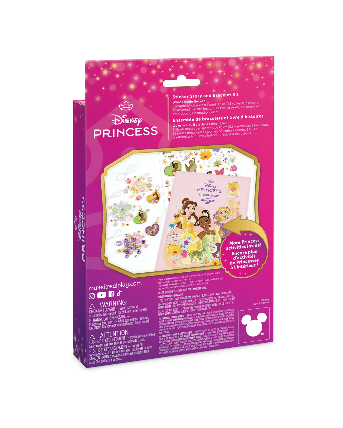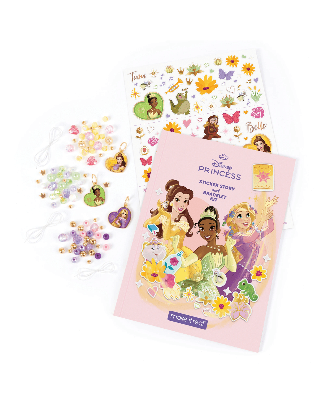 - Includes 3 x elastic cords, 3 x charms, 32 x assorted metallic beads, 53 x assorted beads, 1 x sticker sheet, 1 x storybook and 1 instruction sheet