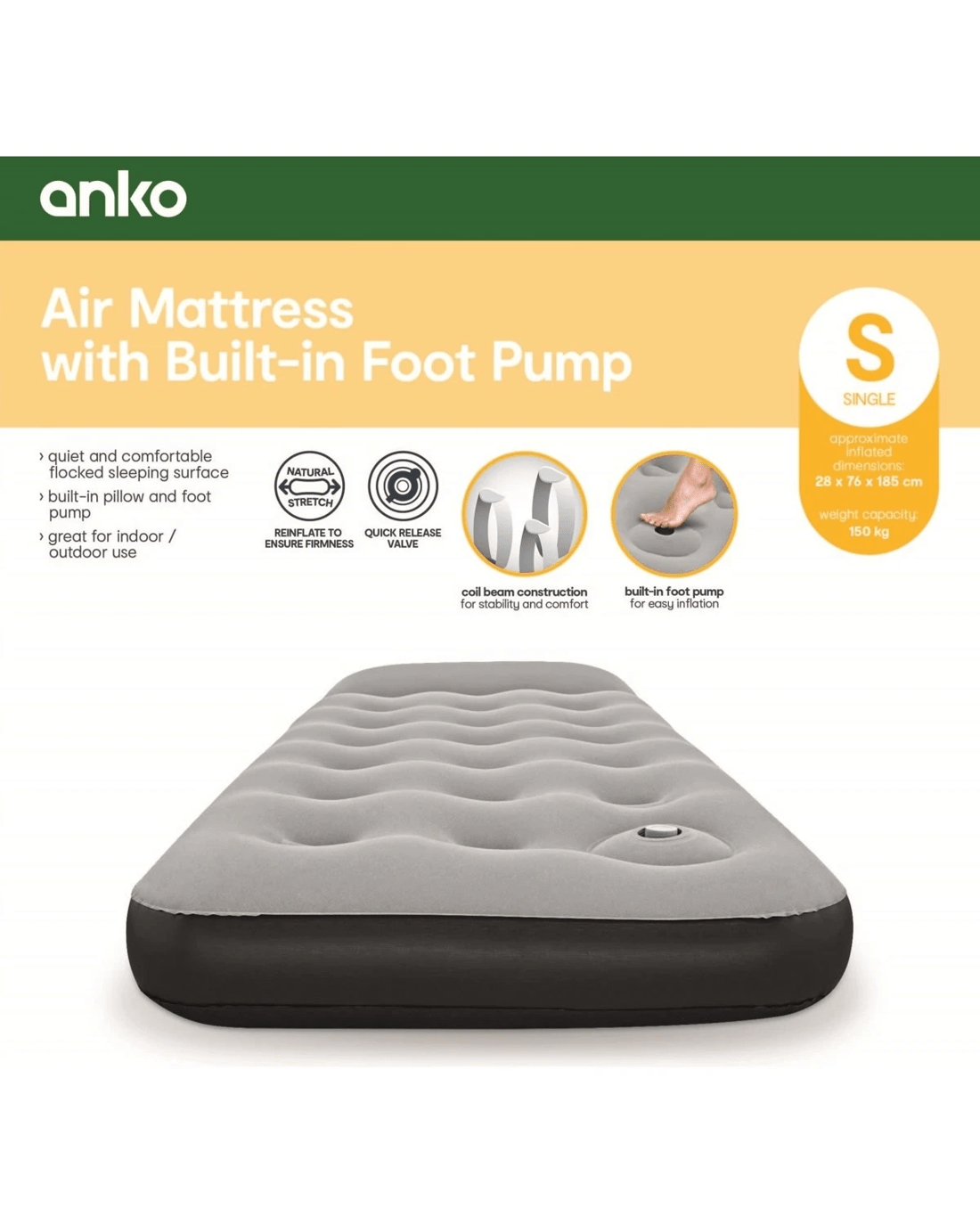 Air Mattress with Built-in Foot Pump - Single Bed, Grey