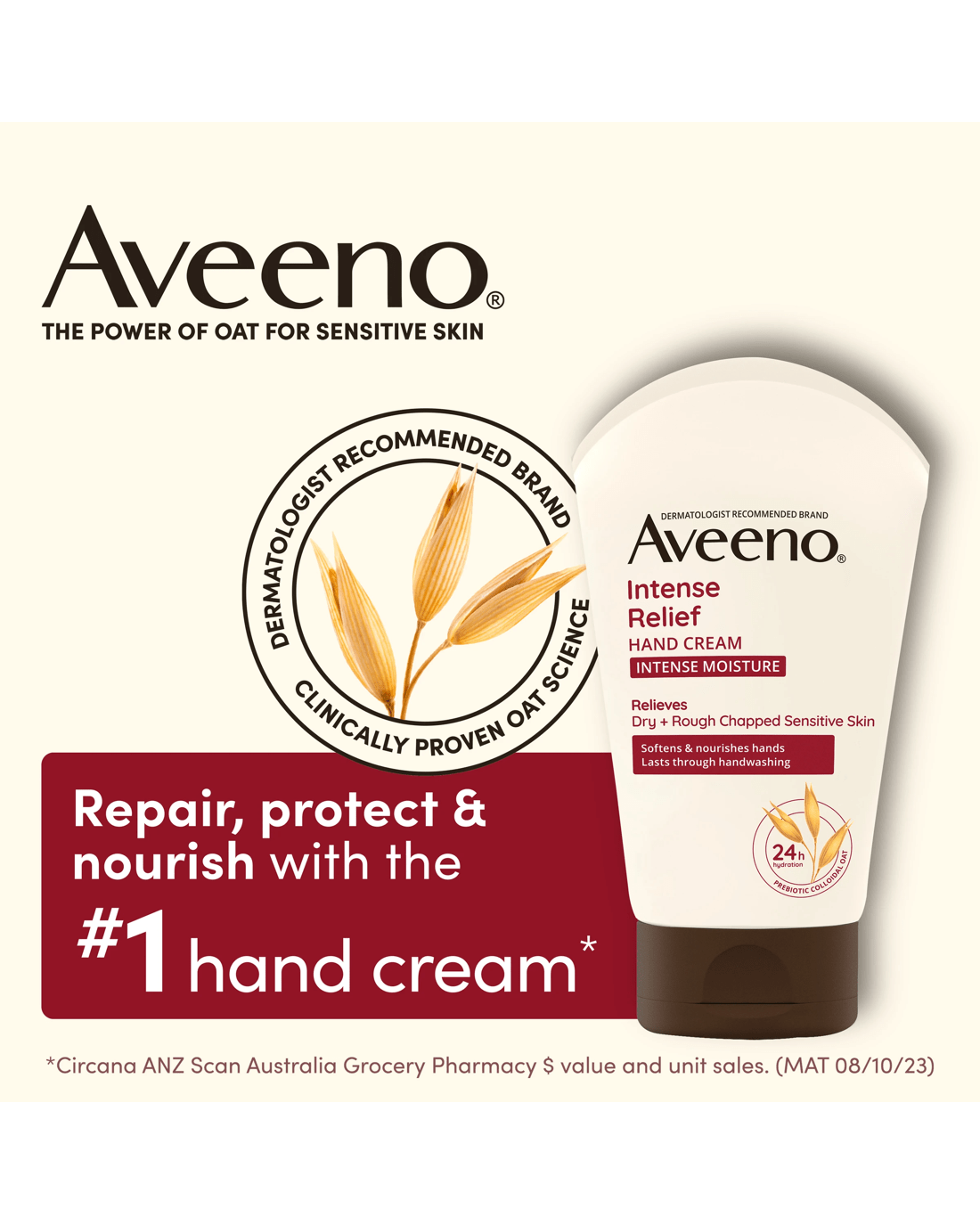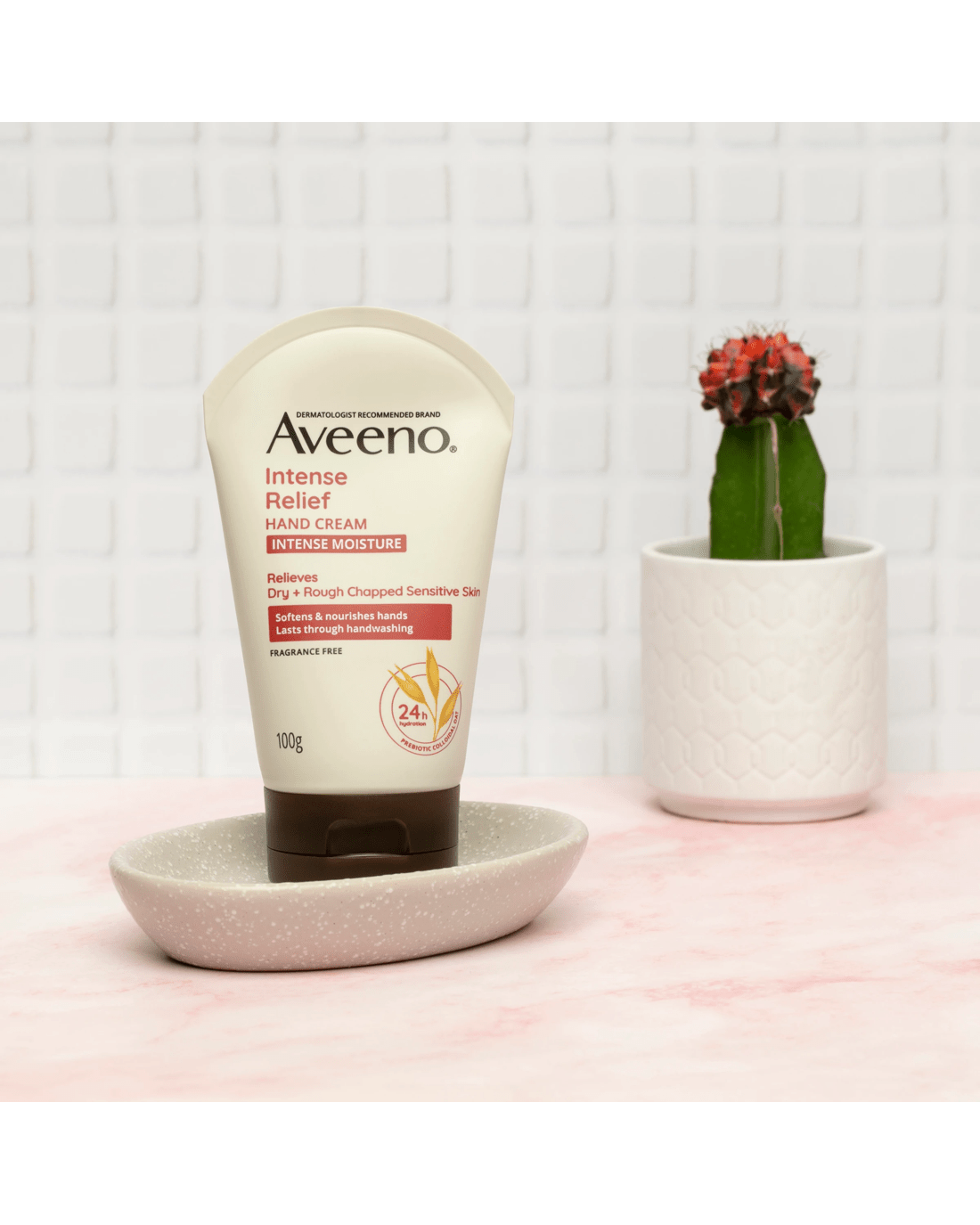Aveeno Intense Relief Hand Cream is a rich yet fast-absorbing cream formulated to help relieve dry skin and form a protective glove that lasts through handwashing. Clinically proven to moisturise for 24 hours. Prebiotic Colloidal Oat Formula provides soothing relief for dry, chapped skin and locks in long-lasting moisture. Leaves your hands smooth and healthy-looking.