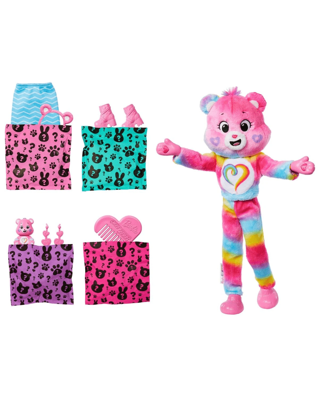 - With 10 surprises to discover, Barbie Cutie Reveal Care Bears dolls deliver an exciting experience for kids, packed with plush friends, sweet fashions and transforming fun!