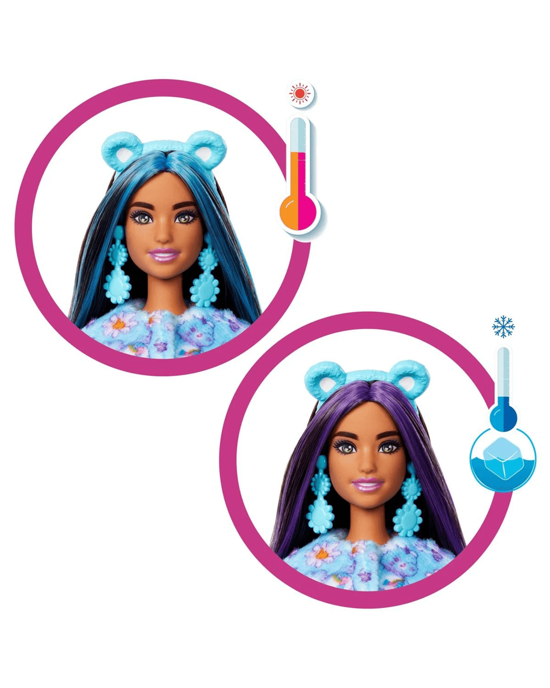 - Use icy cold and warm water to transform Barbie doll's face with twinkle-shine shape details - repeat again and again!
