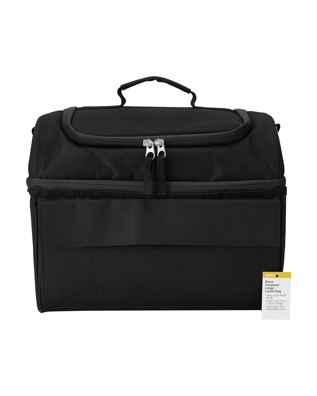 Black Insulated Large Lunch Bag