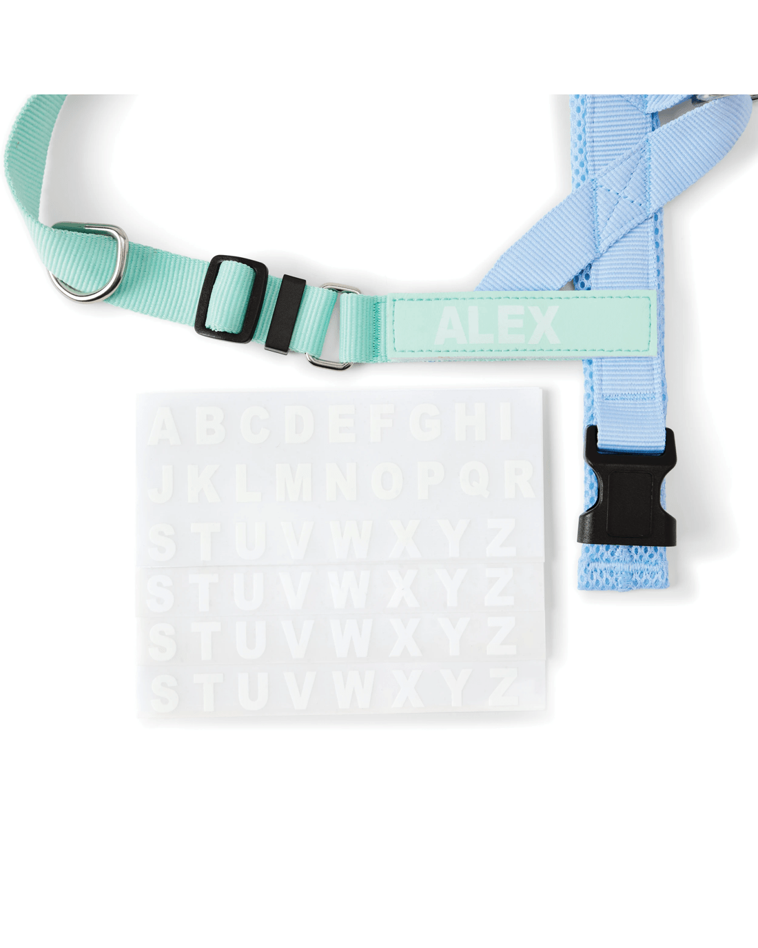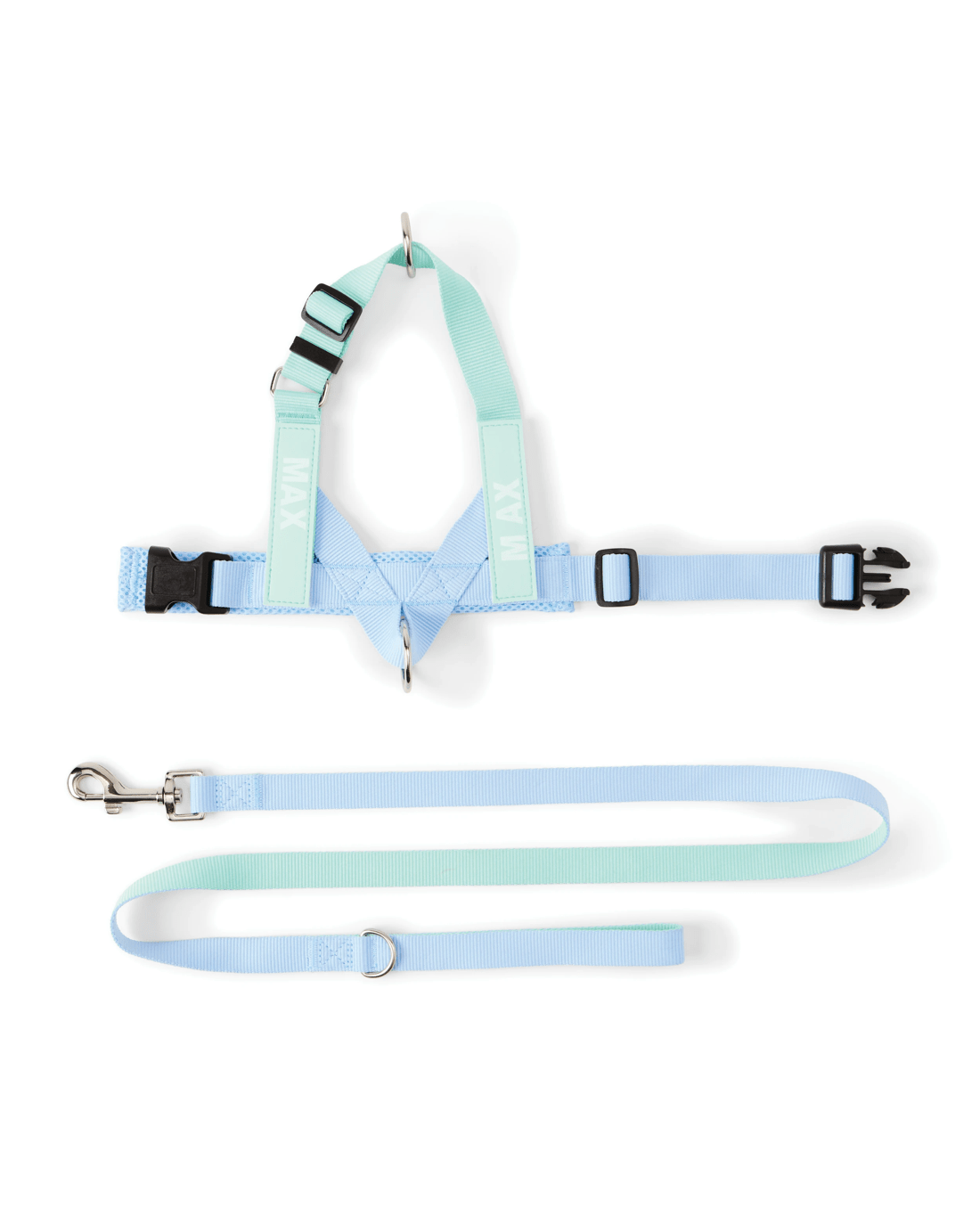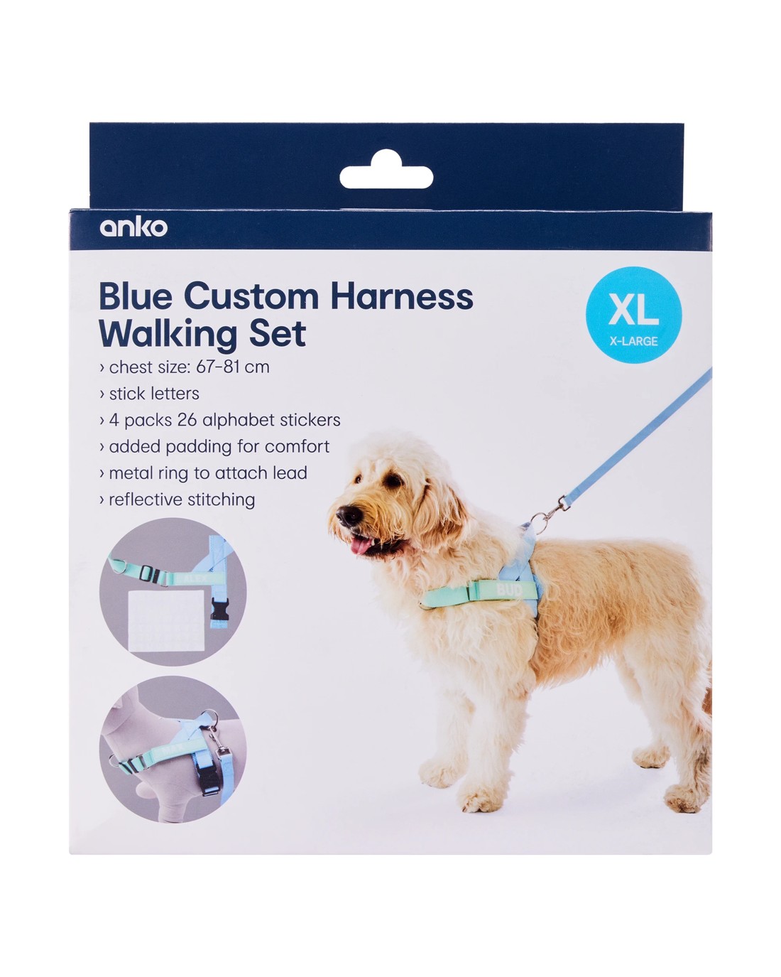 Photo of dog-mannequin features item in size medium and is for illustrative purposes only. Please refer to the description for actual product size.Add flair to every outing! This Blue Custom Harness Walking Set combines comfort and chic style - making every walk a fashionable, tail-wagging occasion.