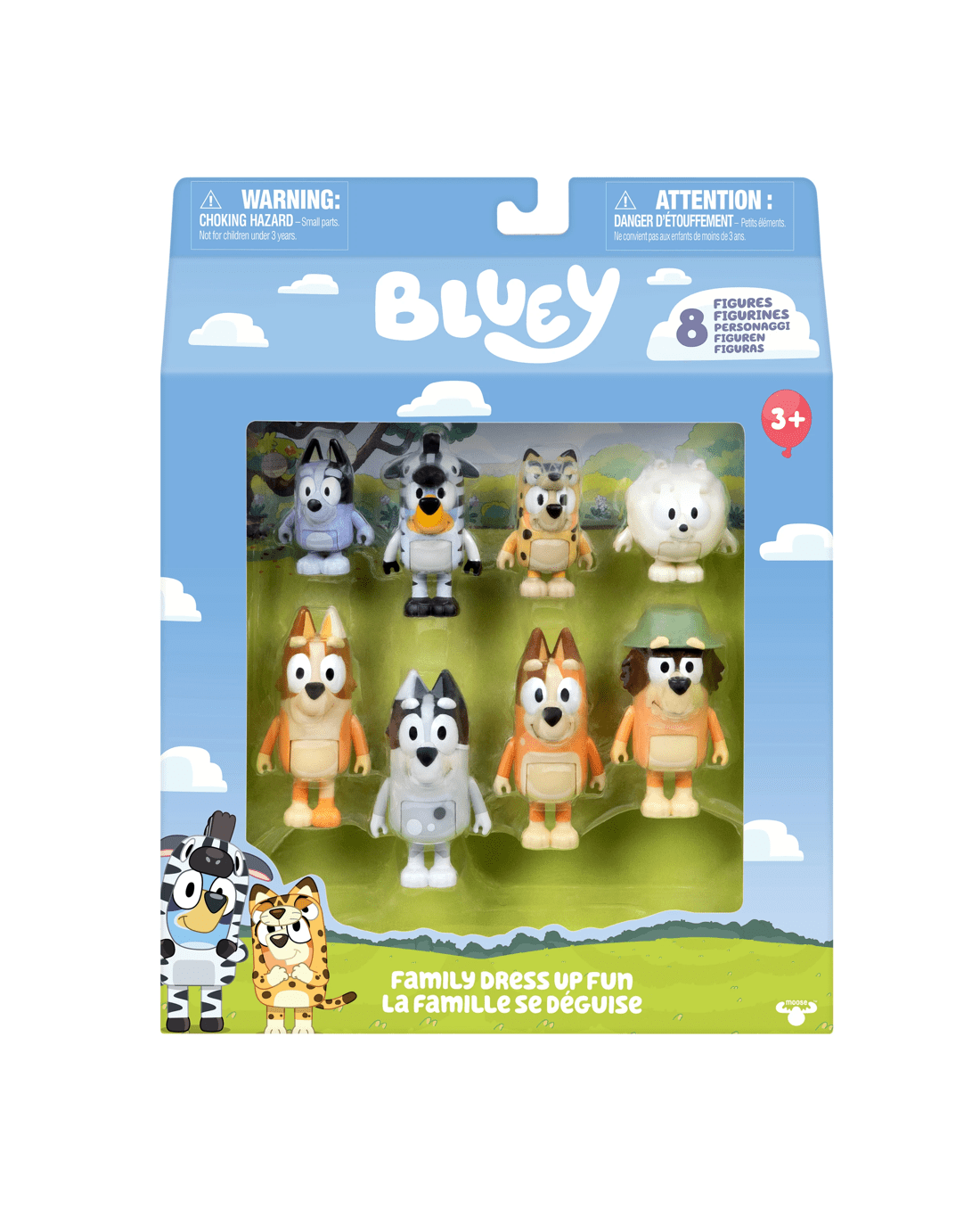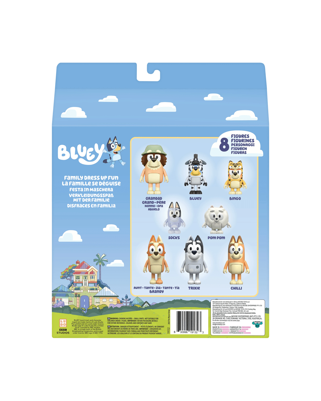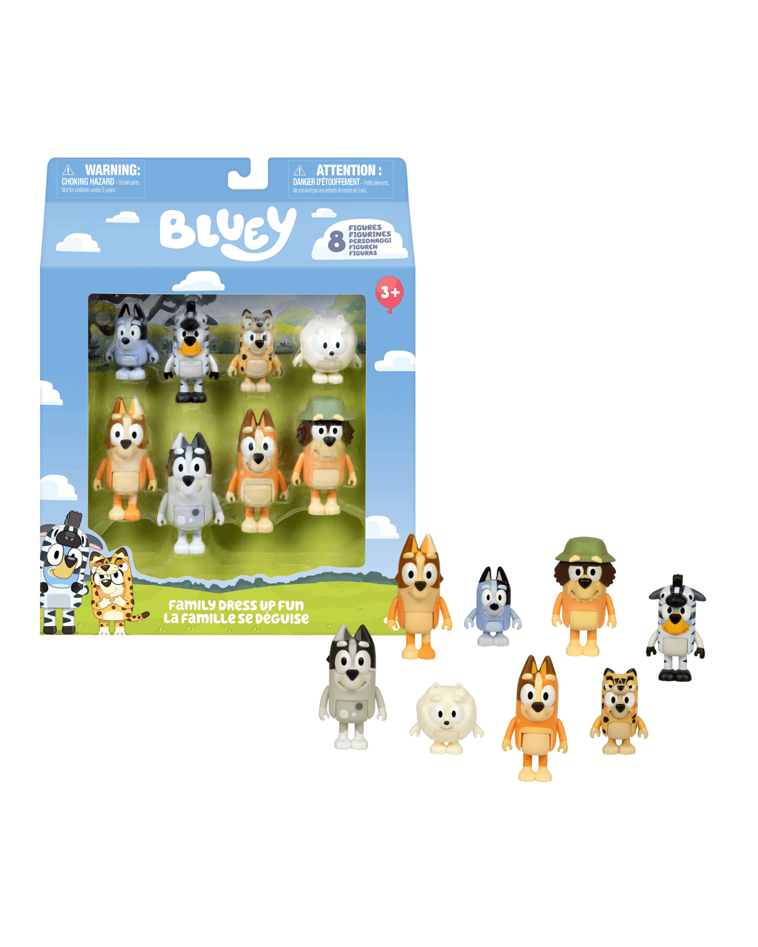 • There are 8 of Bluey's family and friends in this pack to play with - Bluey, Bingo, Grandad, Socks, Pom Pom, Aunty Brandy, Trixie and Chilli!