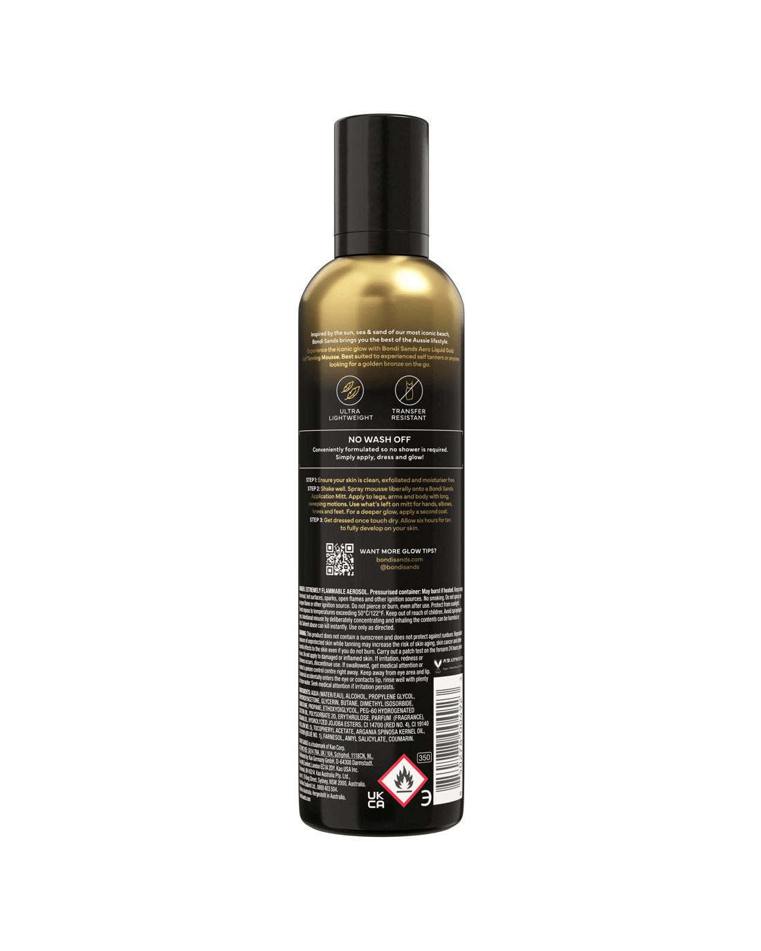 Experience the next generation in self tan with Bondi Sands Aero Liquid Gold, an aerated self tanning foam. Enriched with Argan Oil and infused with the scent of coconut, this ultra-lightweight aerosol foam will develop into a golden Australian tan that is conveniently touch dry in seconds and requires no wash off.