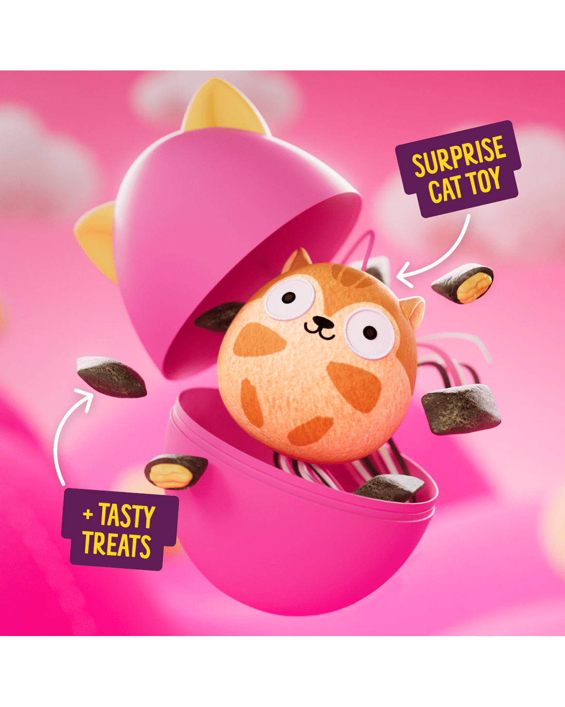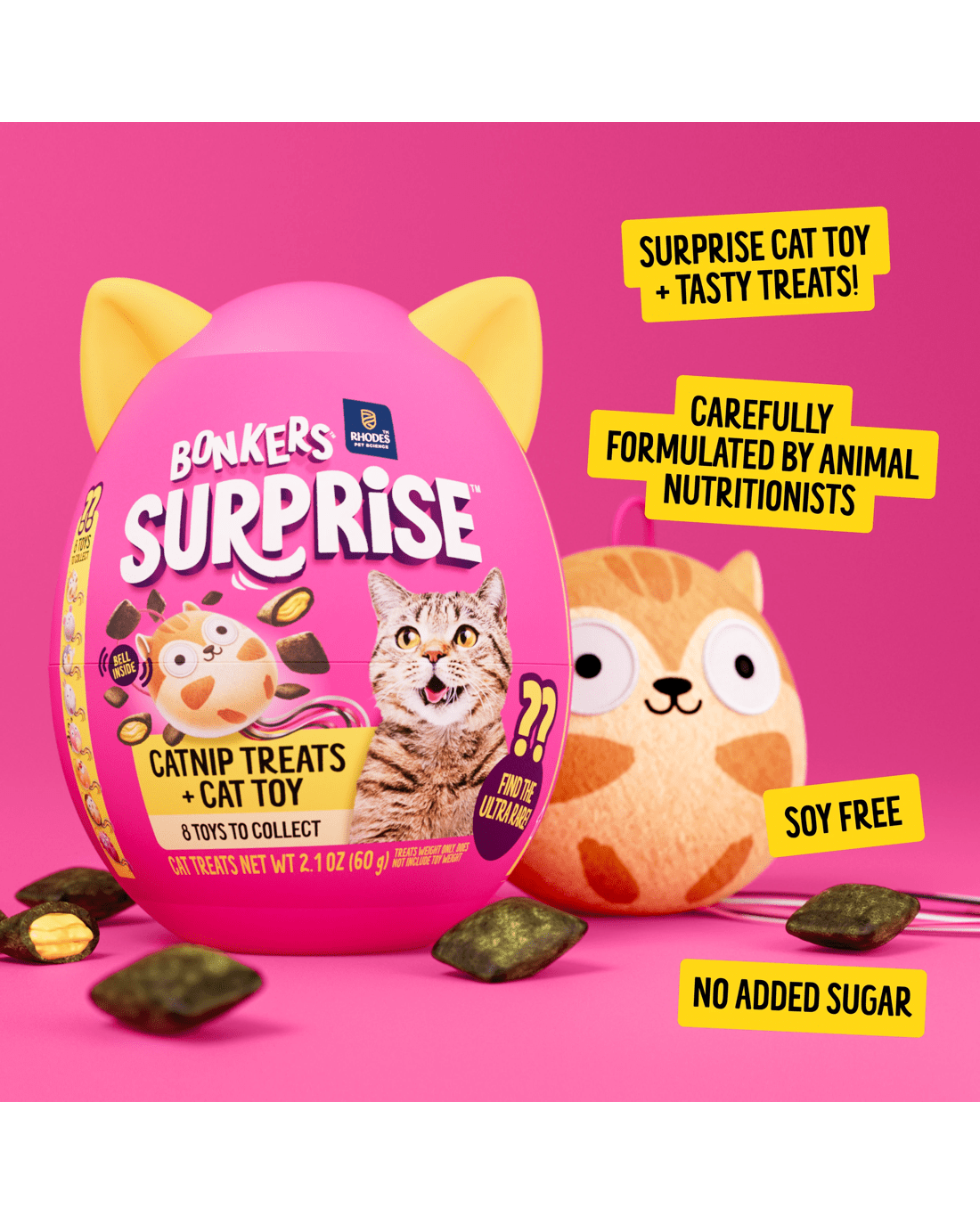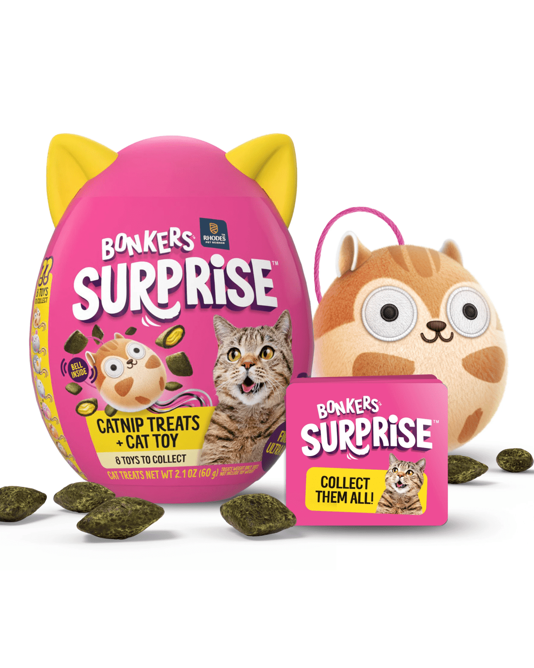 • Treat and toy combo: Each BONKERS Surprise egg contains tasty, crunchy cat treats and a plush toy to bring double the fun