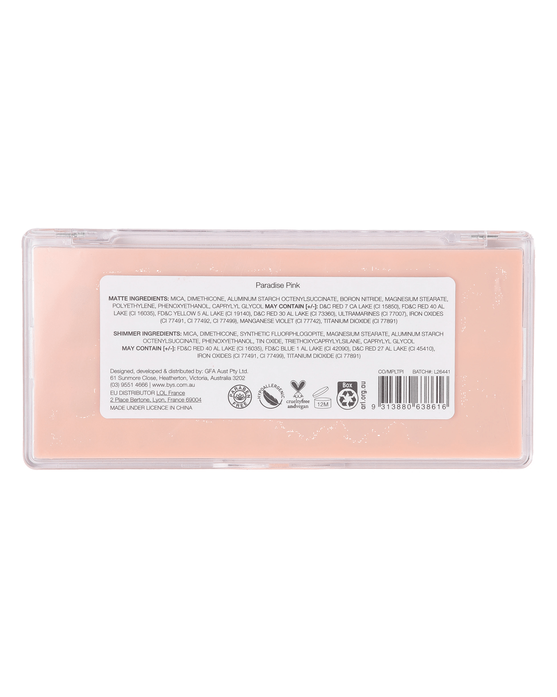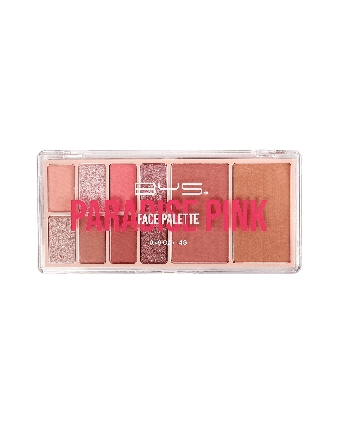 BYS Paradise Pink is a pinkish nude themed palette, with soft neutrals and pops of pink in matte and shimmer shades including matte blush and bronzer.