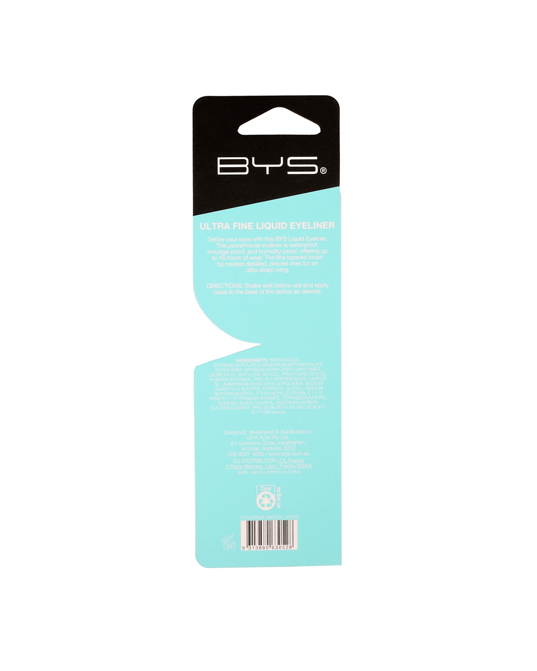 - Ingredients: Water/Aqua, Styrene/Acrylates/Ammonium Methacrylate Copolymer, Styrene/Acrylates Copolymer, Laureth-21, Butylene Glycol, Propylene Glycol, Phenoxyethanol, PEG-40 Hydrogenated Castor Oil, Ammonium Acrylates Copolymer, Sodium Laureth-12 Sulfate, Caprylyl Glycol, Sodium Dehydroacetate, Ethylhexylglycerin, C11-15 Pareth-7, Potassium Sorbate, Tetrasodium EDTA, Sodium Lauryl Sulfate, Disodium Laureth Sulfosuccinate, PPG-26-Buteth-26, D&C Black 2 (CI 77266 (Nano))