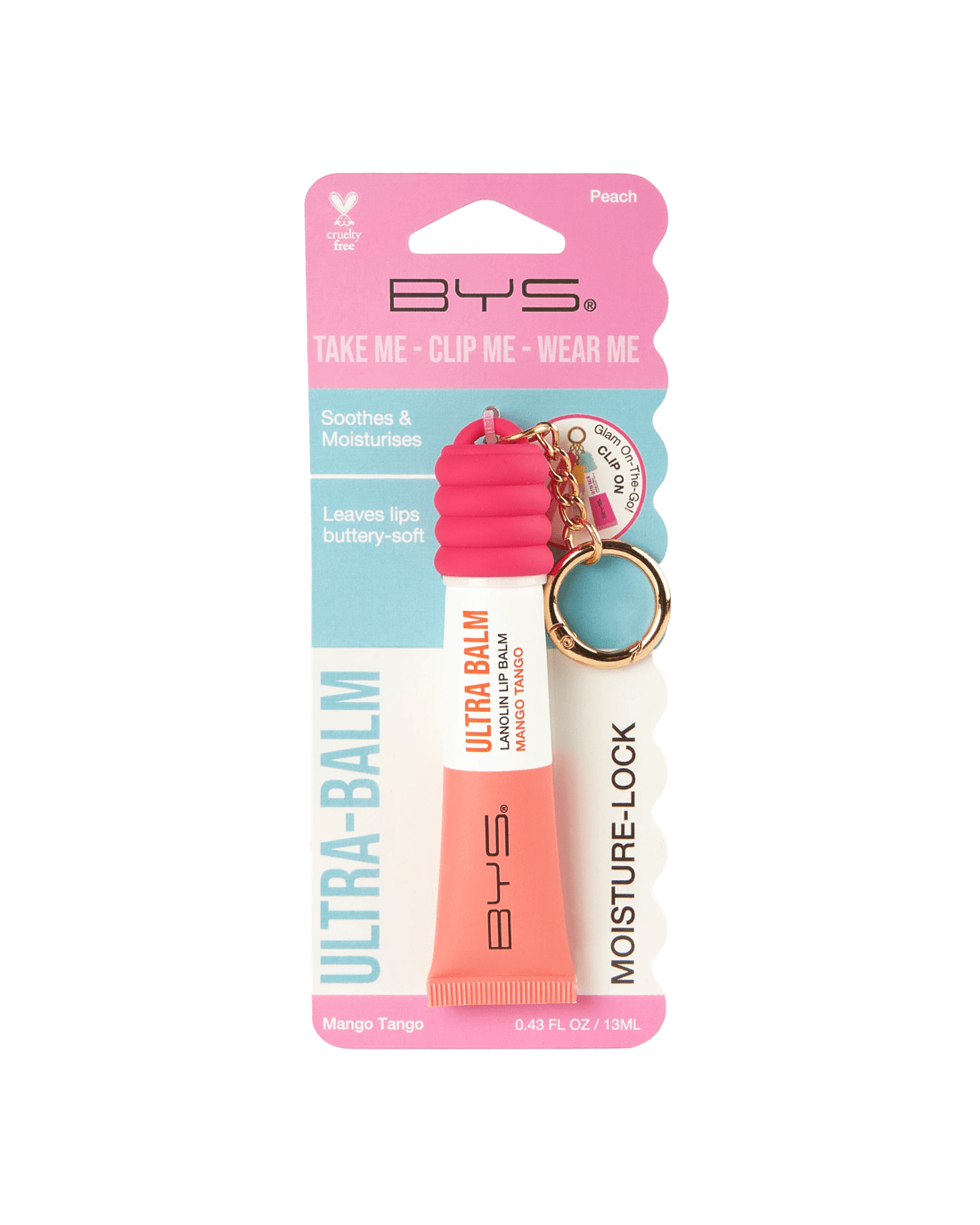 Get soft, nourished lips on the go with this convenient Ultra Balm Wearable Keyring! The creamy, thick balm melts into the lips and is infused with natural lanolin, an ingredient similar to the skin's own lipids, making it deeply hydrating yet breathable. Available in five delicious scents, Mango Tango is a peachy tint.