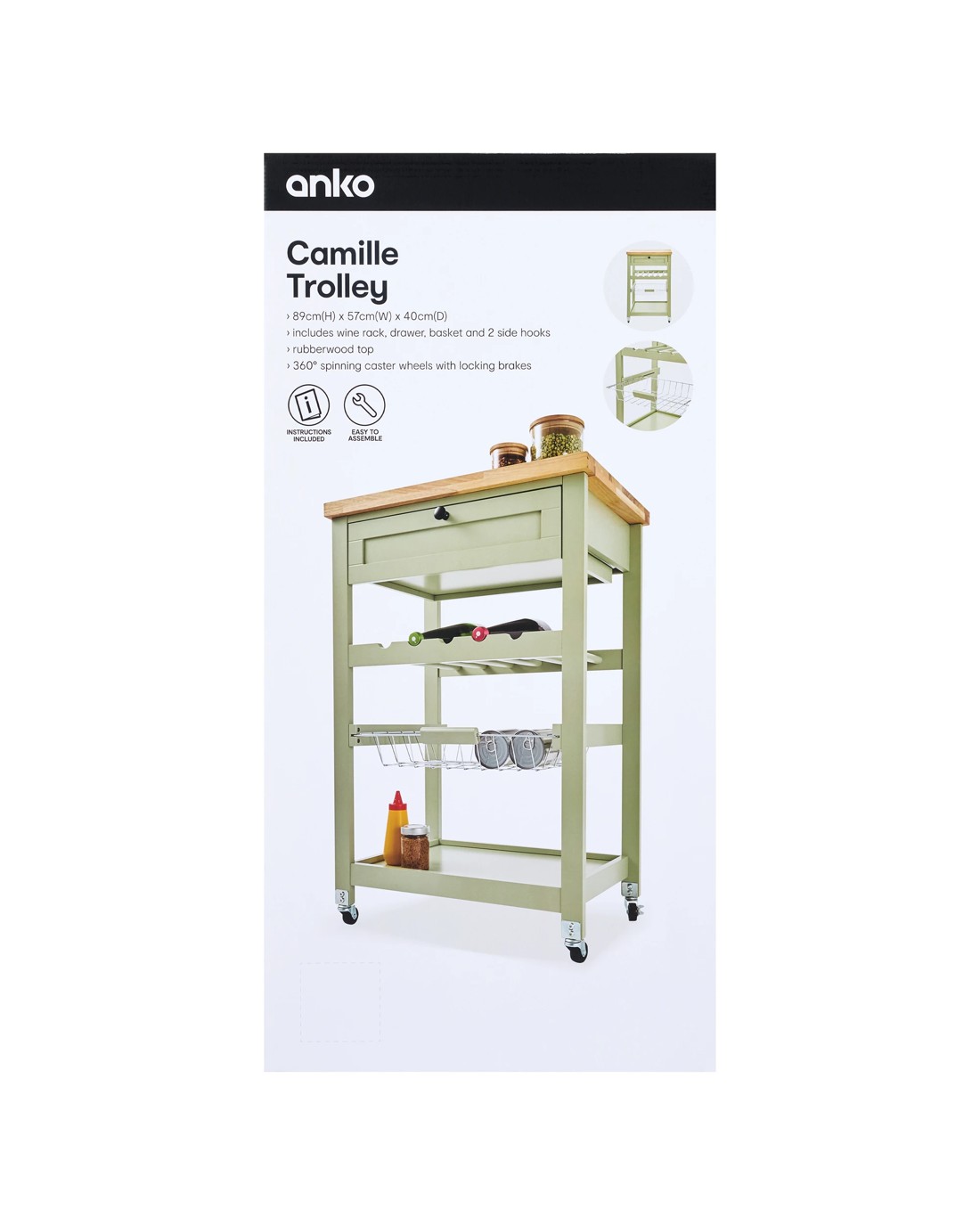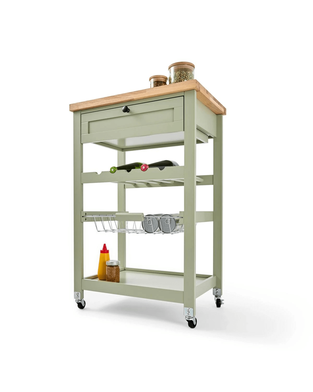 The Camille Trolley is a smart addition to any kitchen, offering extra storage and workspace for meal prep, serving, or keeping everyday essentials organized.