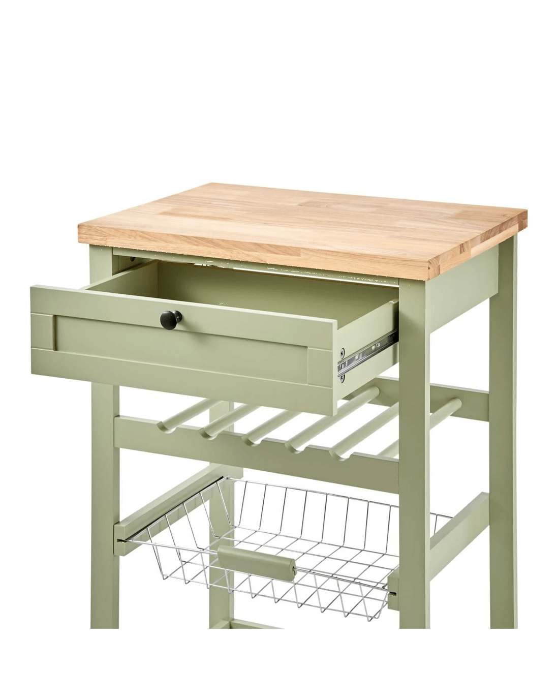 Drawer and Basket Combination: The central drawer offers a discreet place for small utensils and kitchen tools, while the open lower basket is ideal for items you want to access quickly - such as linens, produce, or towels.