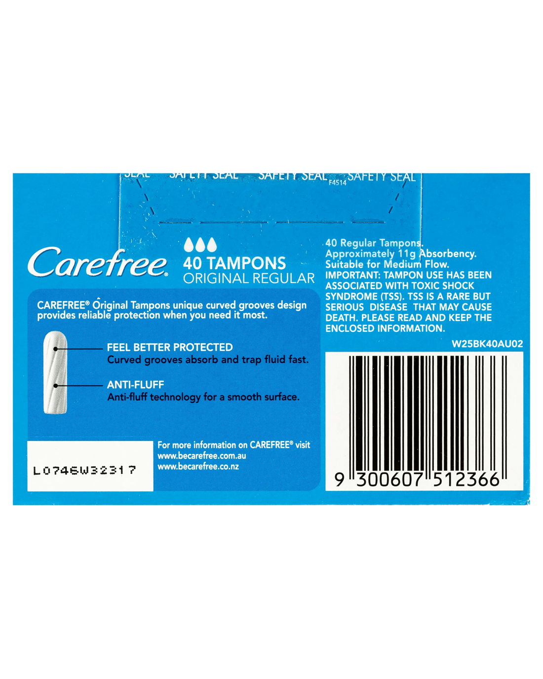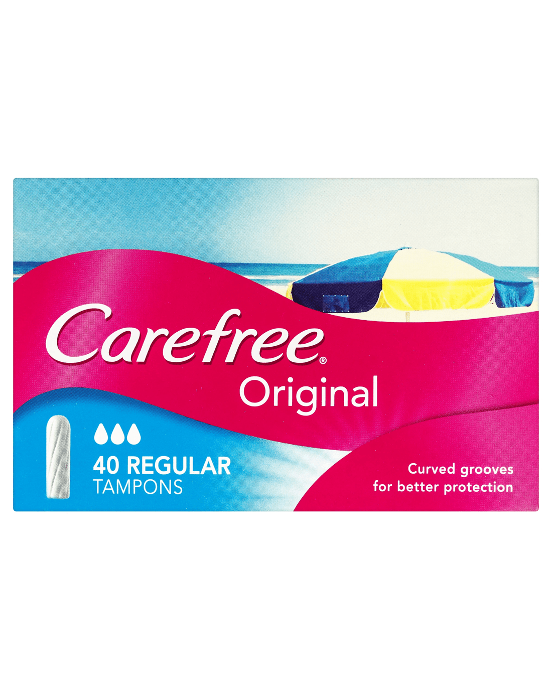 Carefree Original Regular Tampons provide reliable period protection when you need it most. The absorbent unique curved groove design directs fluid efficiently inside the tampon so that you feel better protected against leaks. Plus, the Anti-Fluff technology gives you a smooth surface so that you don’t have to stress about fluff.