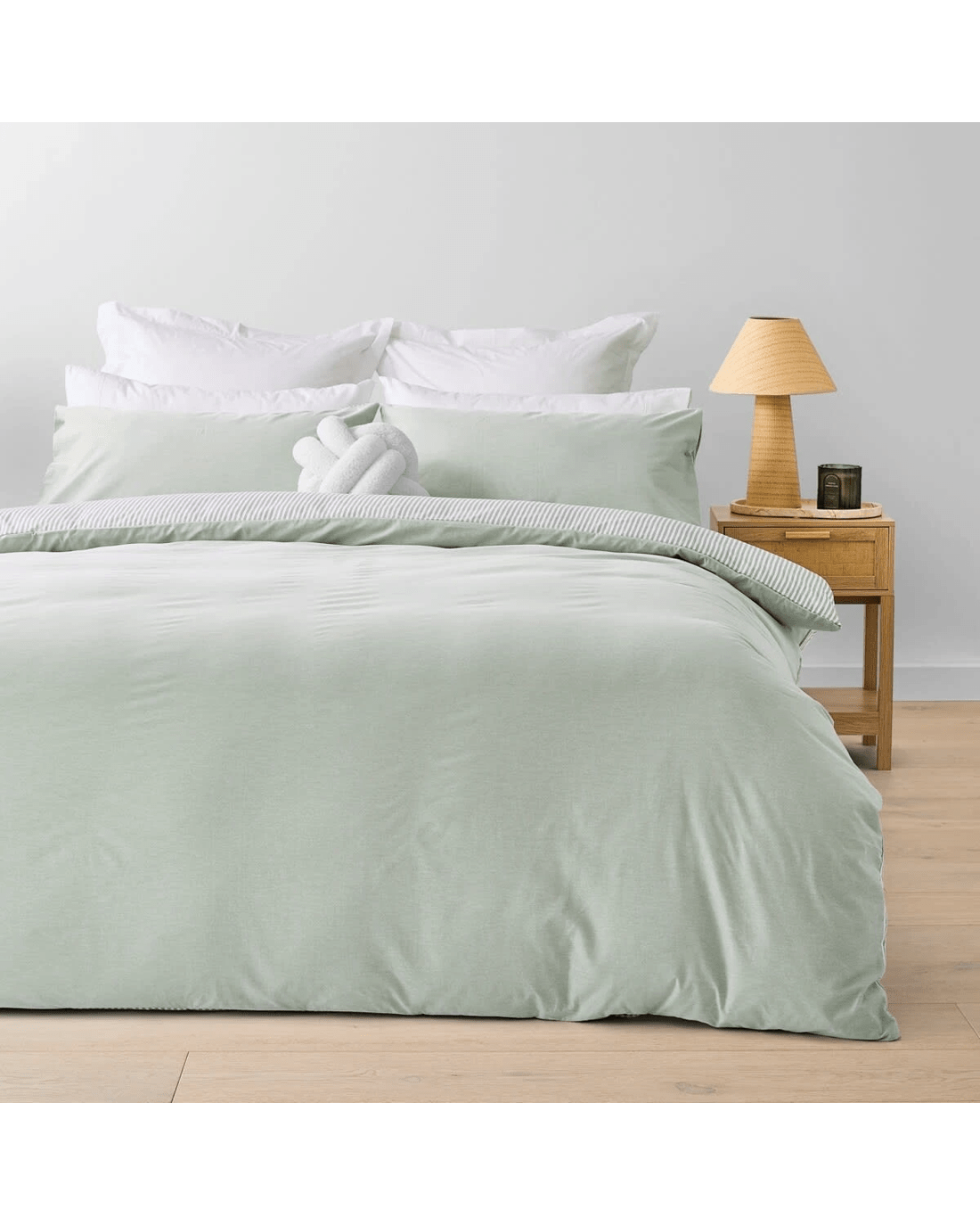 Chambray Cotton Rich Reversible Quilt Cover Set - Single Bed, Seagrass