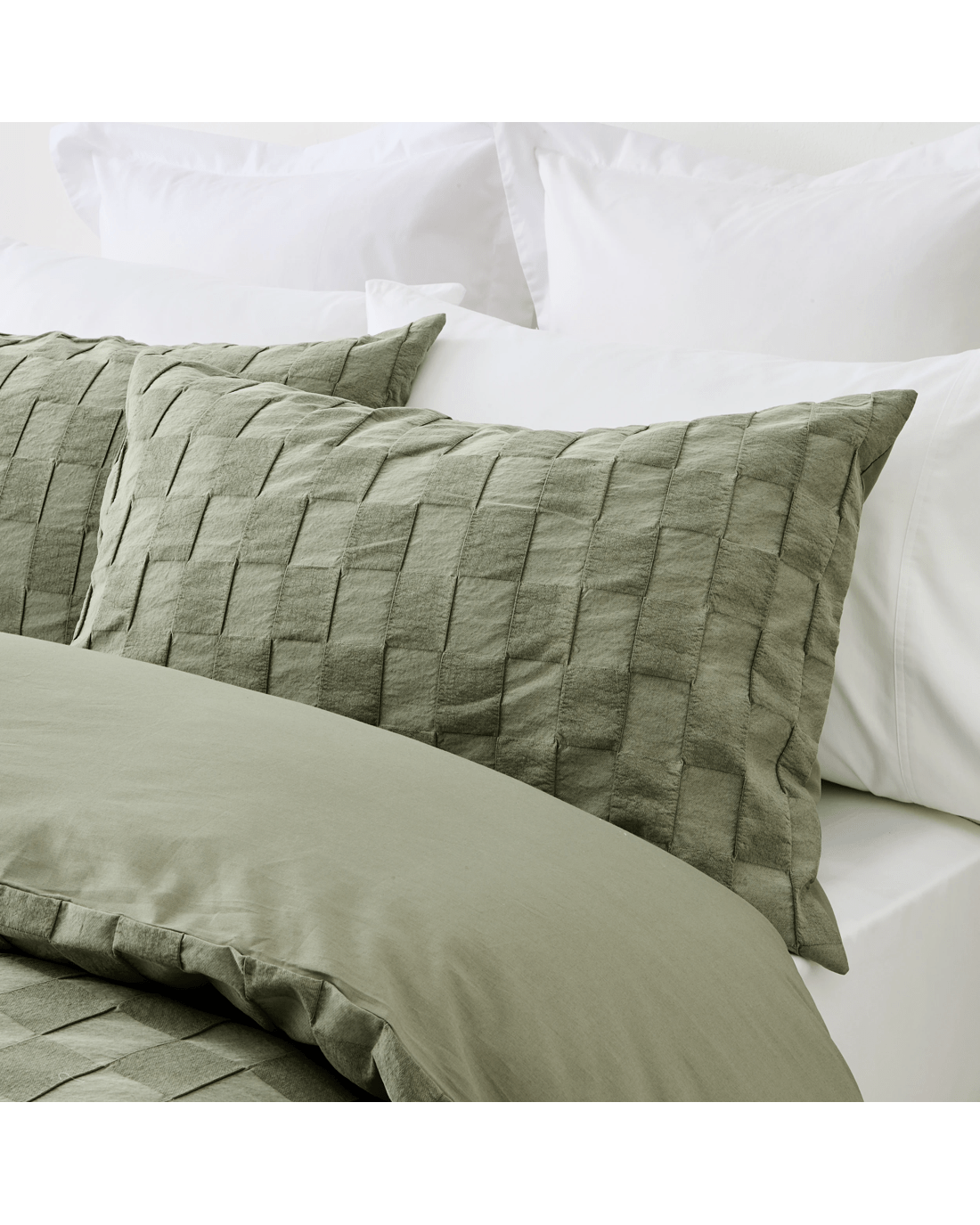 Check Stonewashed Cotton Quilt Cover Set - King Bed, Green