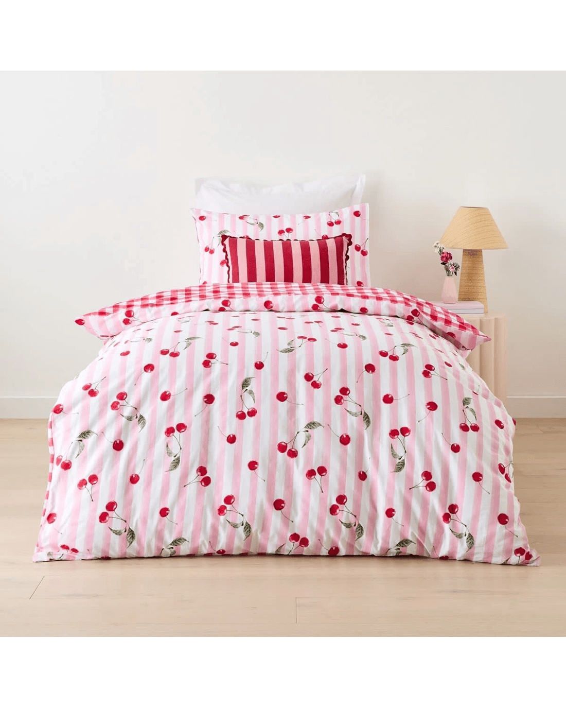 Cherry Cotton Rich Reversible Quilt Cover Set - Single Bed