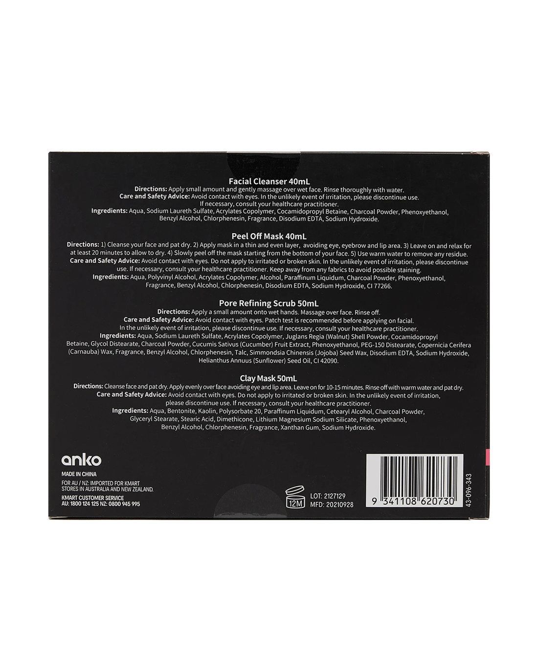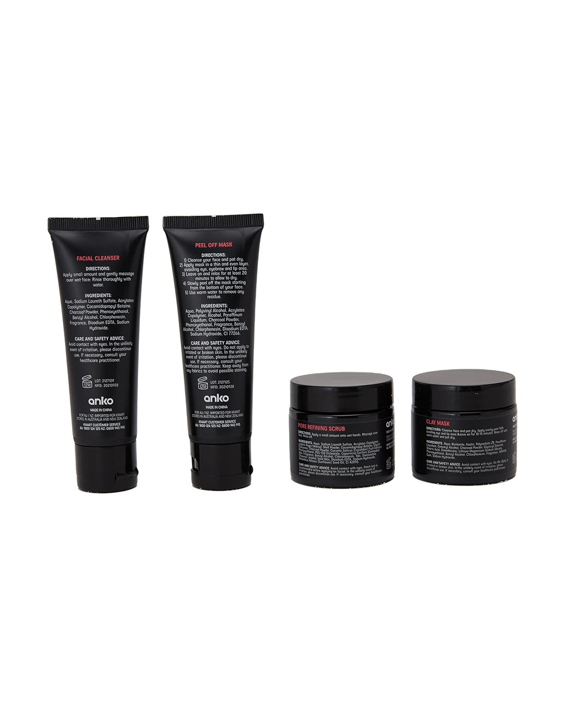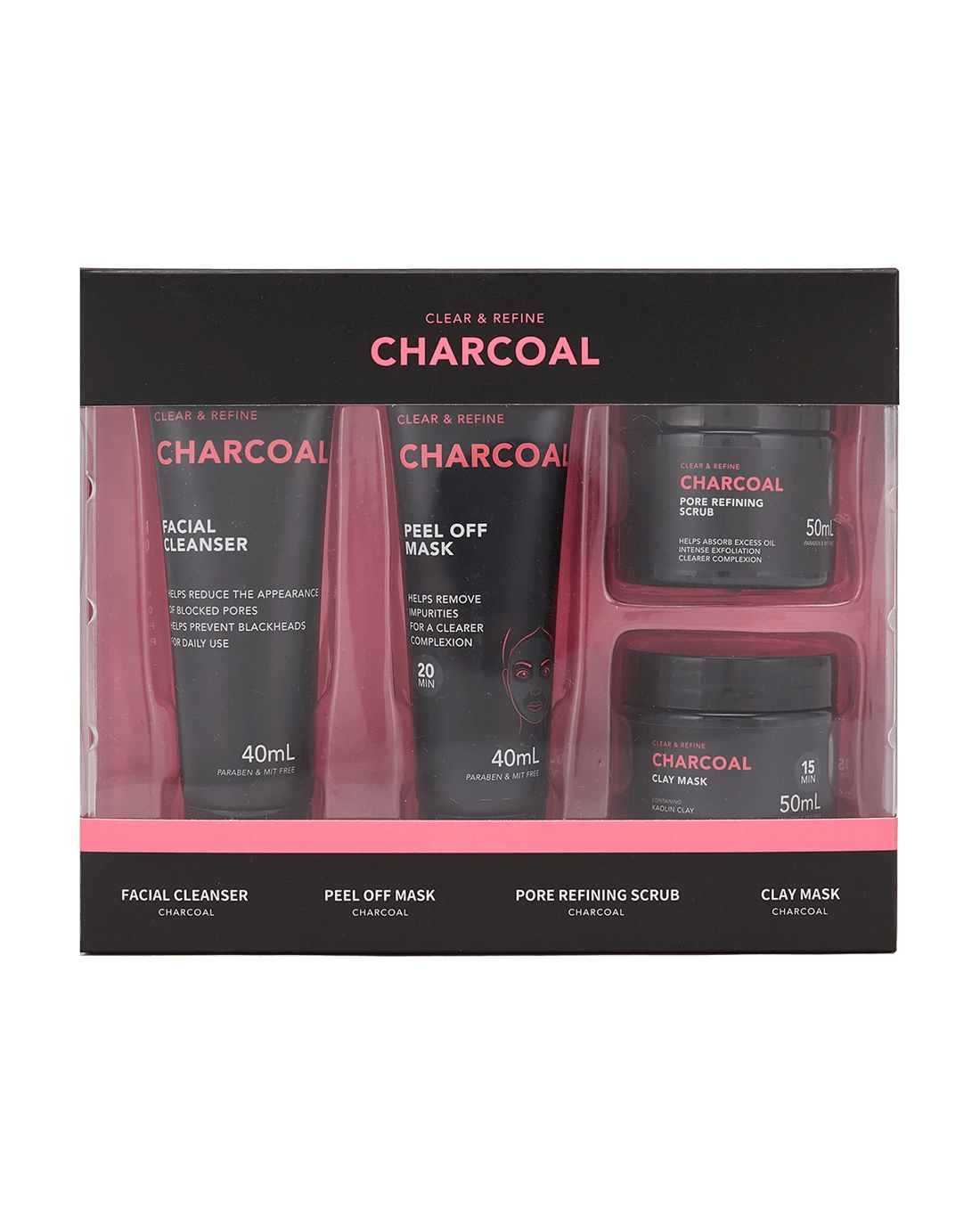- Includes 1 x facial cleanser, 1 x peel off mask, 1 x pore refining scrub and 1 x clay mask
