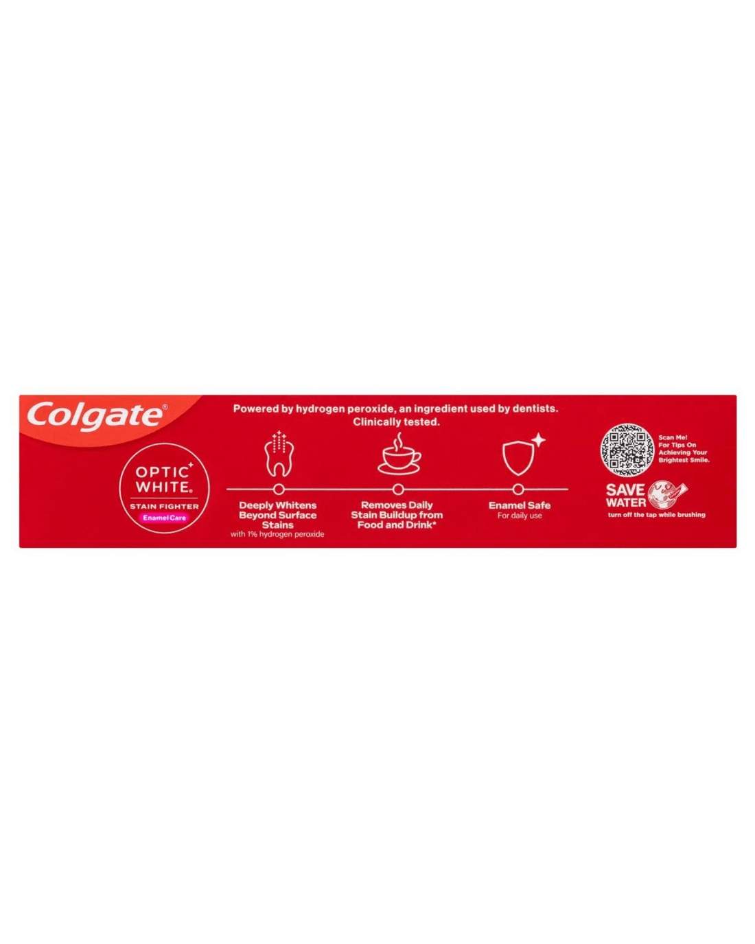 Colgate Optic White Stain Fighter Enamel Care Teeth Whitening Toothpaste is powered by hydrogen peroxide, the same teeth whitening ingredient used by dentists.