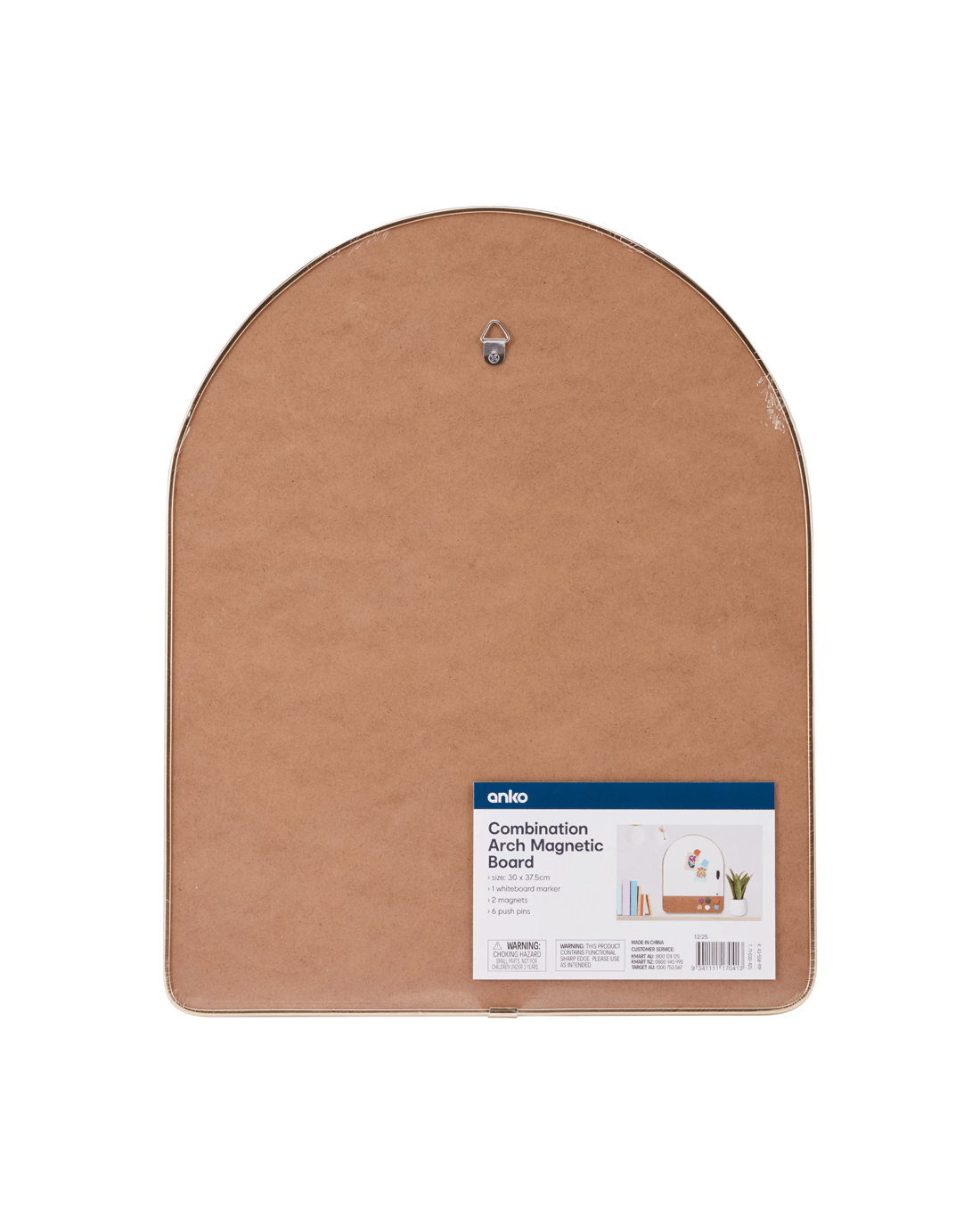 Stay organised in style with the Combination Arch Magnetic Board. Featuring a sleek arched design, it combines a magnetic surface and pinboard - perfect for notes, photos, and reminders in any modern space.