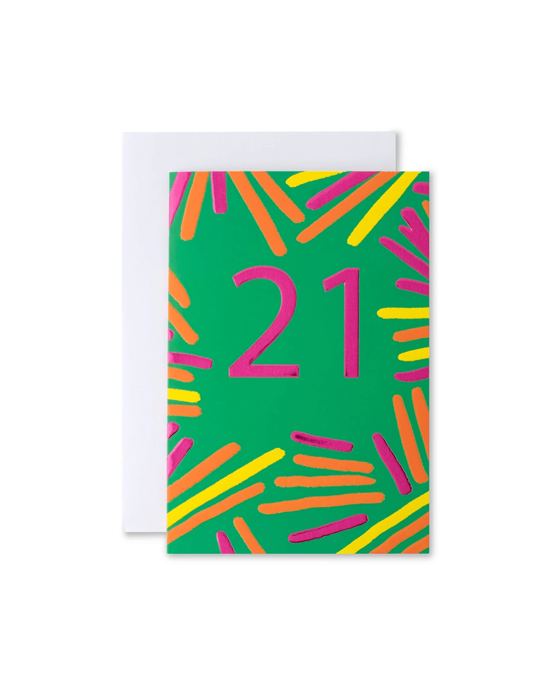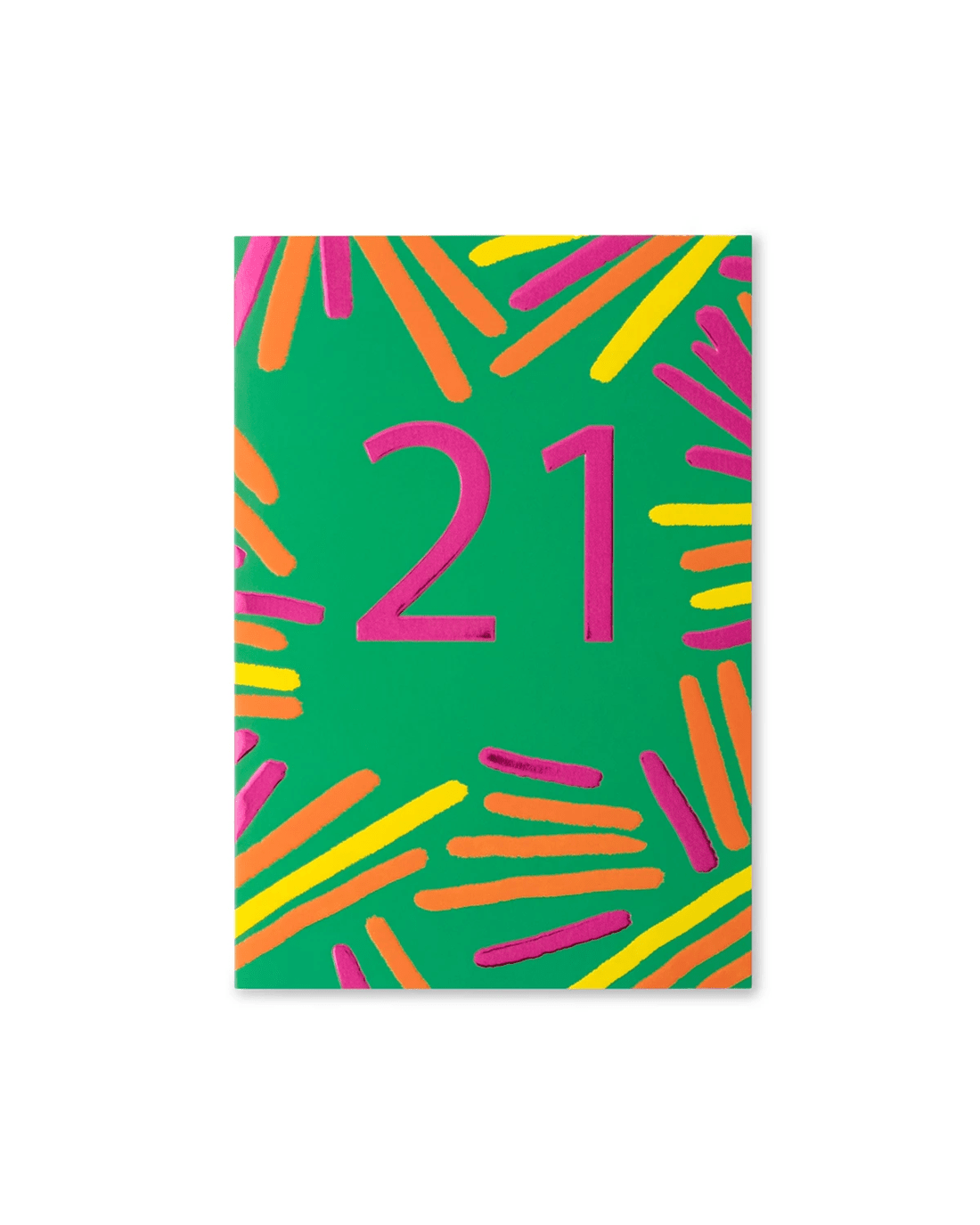 Celebrate a special 21st birthday with this bright card by Connections from Hallmark, featuring the number 21 in pink foil against a green background.