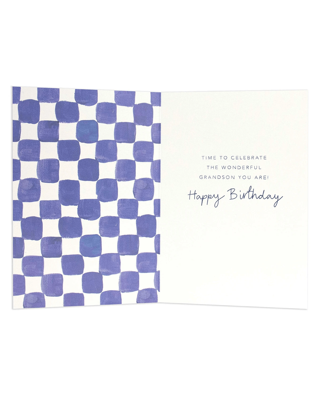 • Inside message reads 'Time to celebrate the wonderful grandson you are! Happy Birthday'