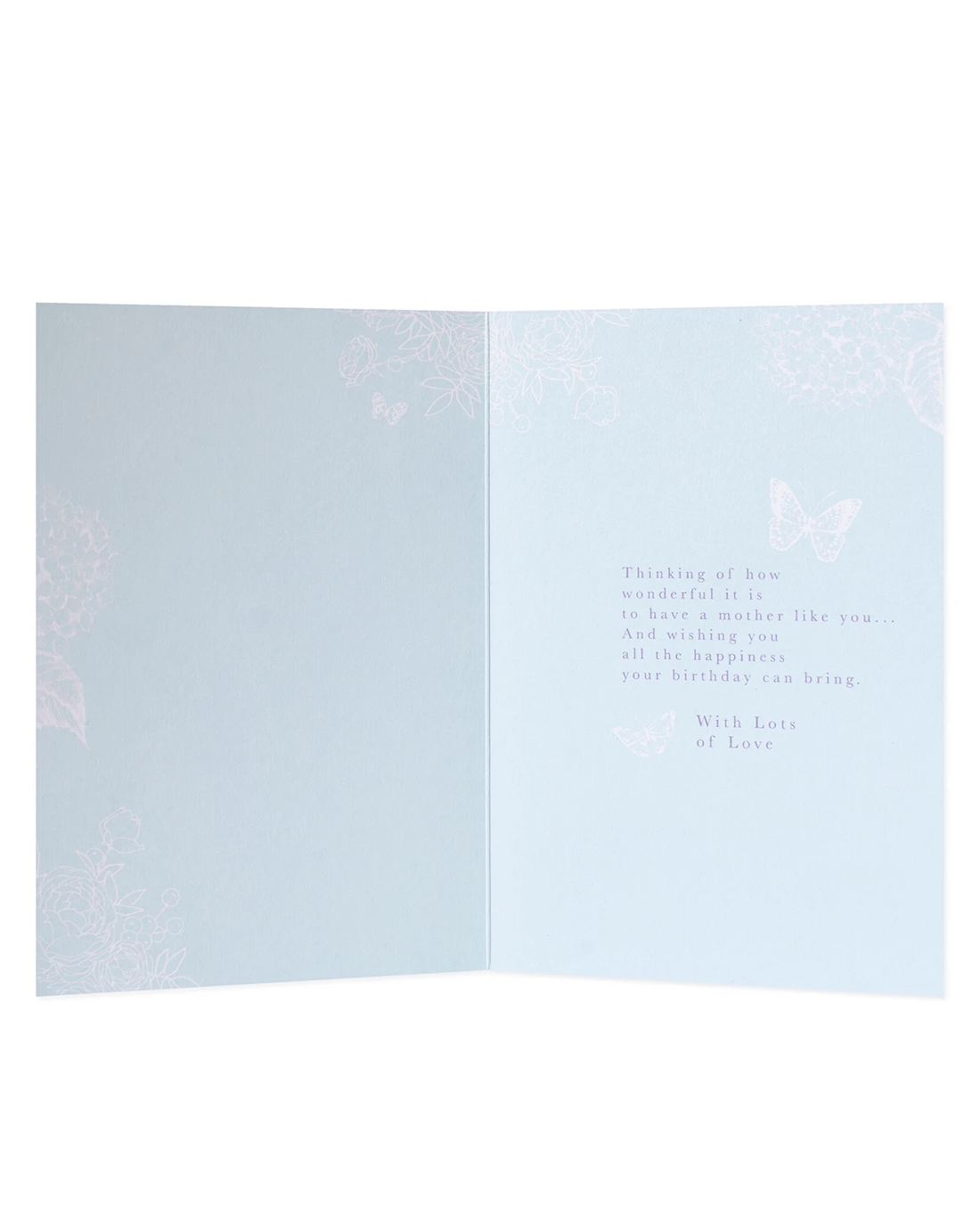 • Inside message reads: 'Thinking of how wonderful it is to have a mother like you... And wishing you all the happiness your birthday can bring. With lots of love.'