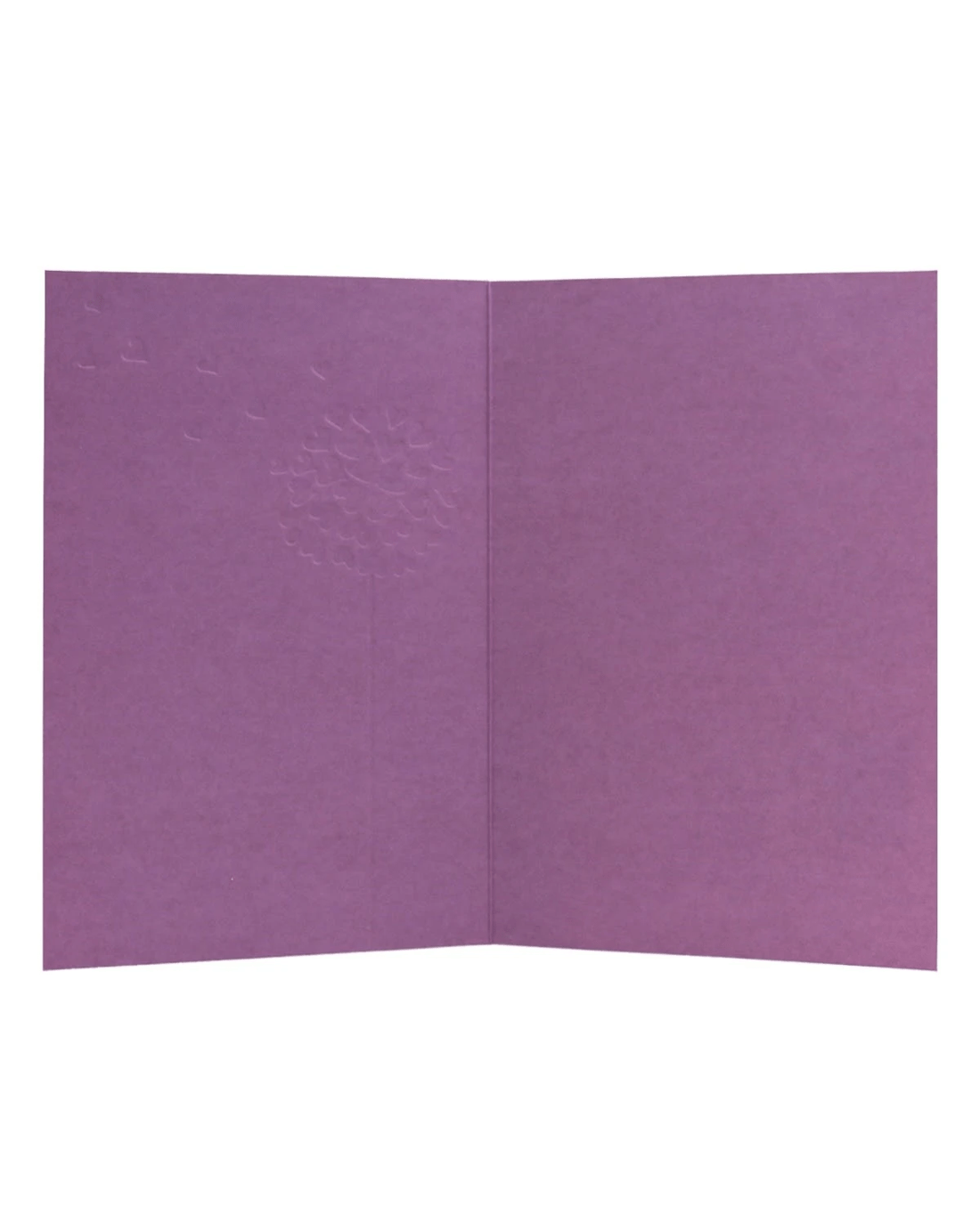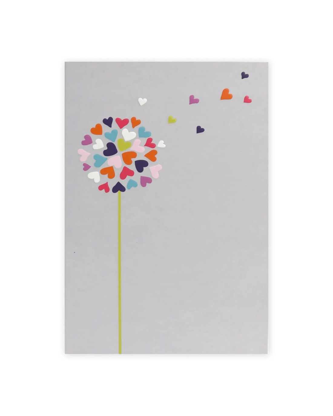 Features- The front of the card features an illustration of a dandelion made up of love hearts with embossed elements
