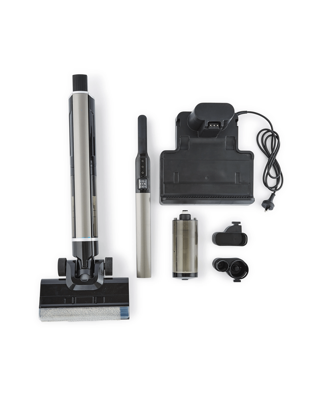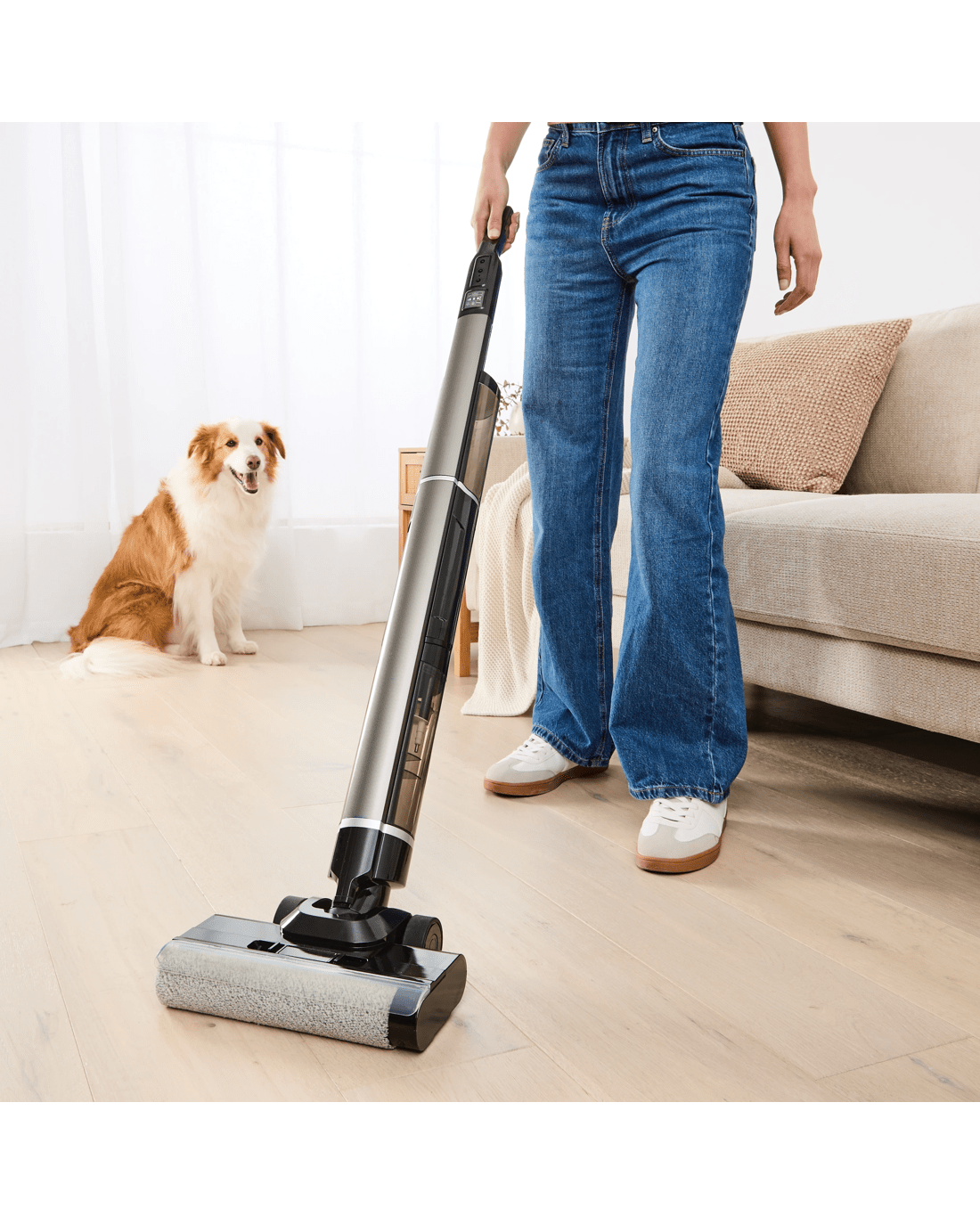 - Cleans and vacuums in one go – easily tackles wet and dry mess on most hard floors