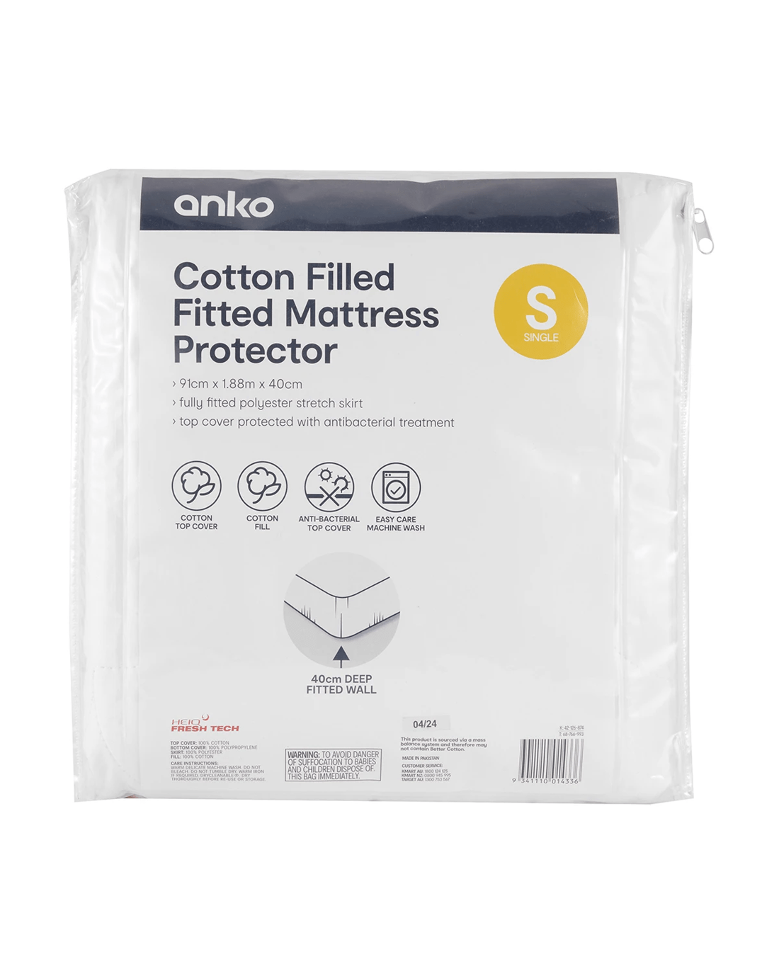 Cotton Filled Fitted Mattress Protector - Single Bed, White