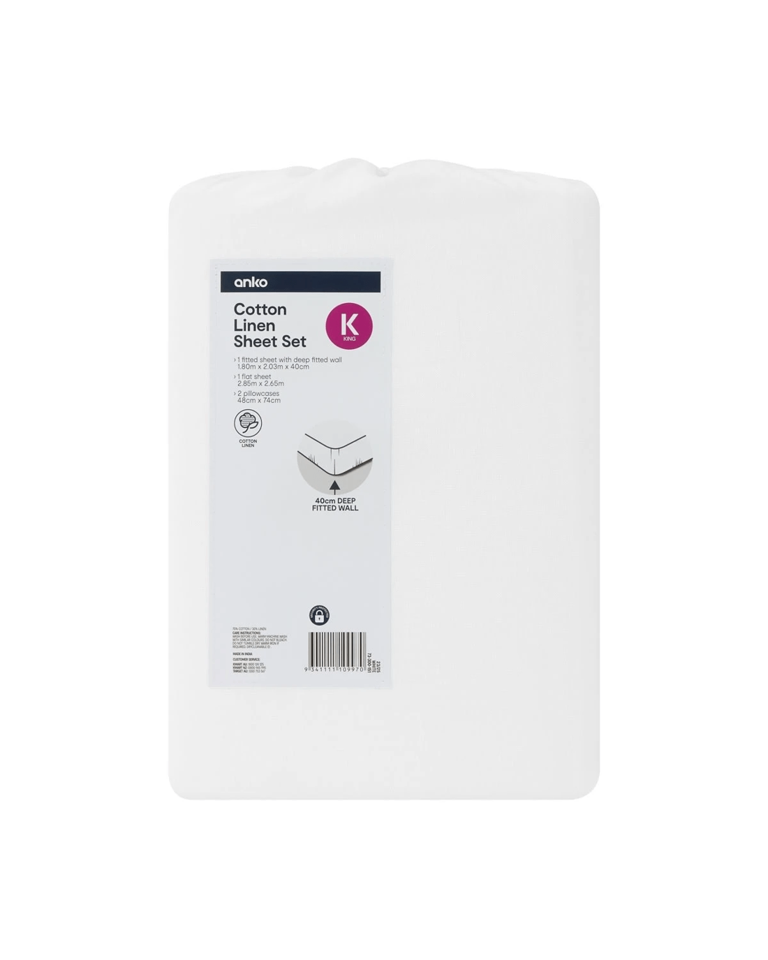 Cotton Linen Sheet Set - King Bed, White