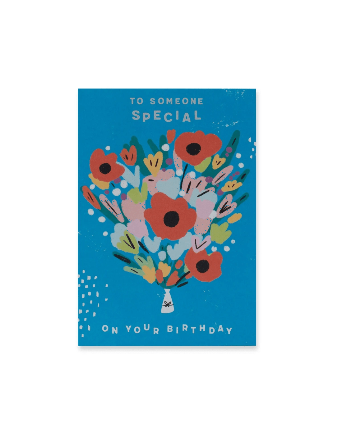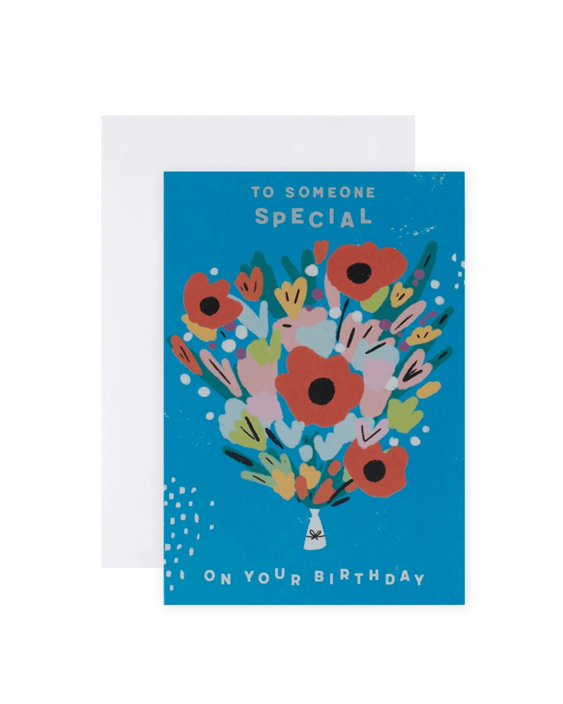 • The front of the card features a vibrant illustration of a colourful bouquet of flowers in a vase alongside the message 'TO SOMEONE SPECIAL ON YOUR BIRTHDAY'