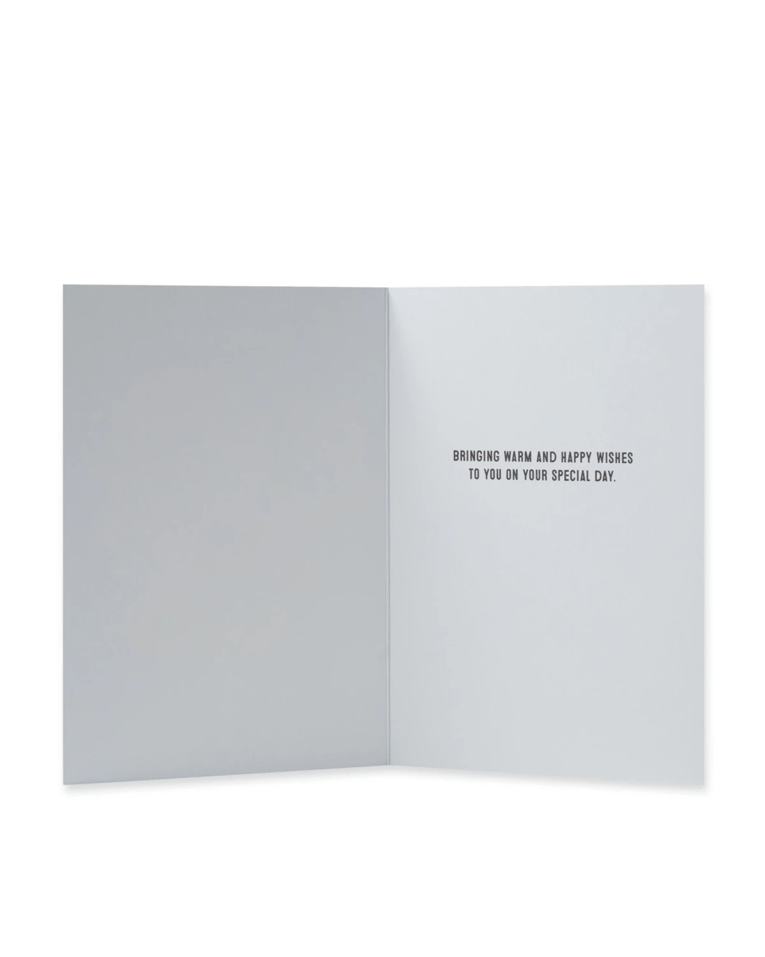 • The inside of the card features the message 'BRINGING WARM AND HAPPY WISHES TO YOU ON YOUR SPECIAL DAY.'