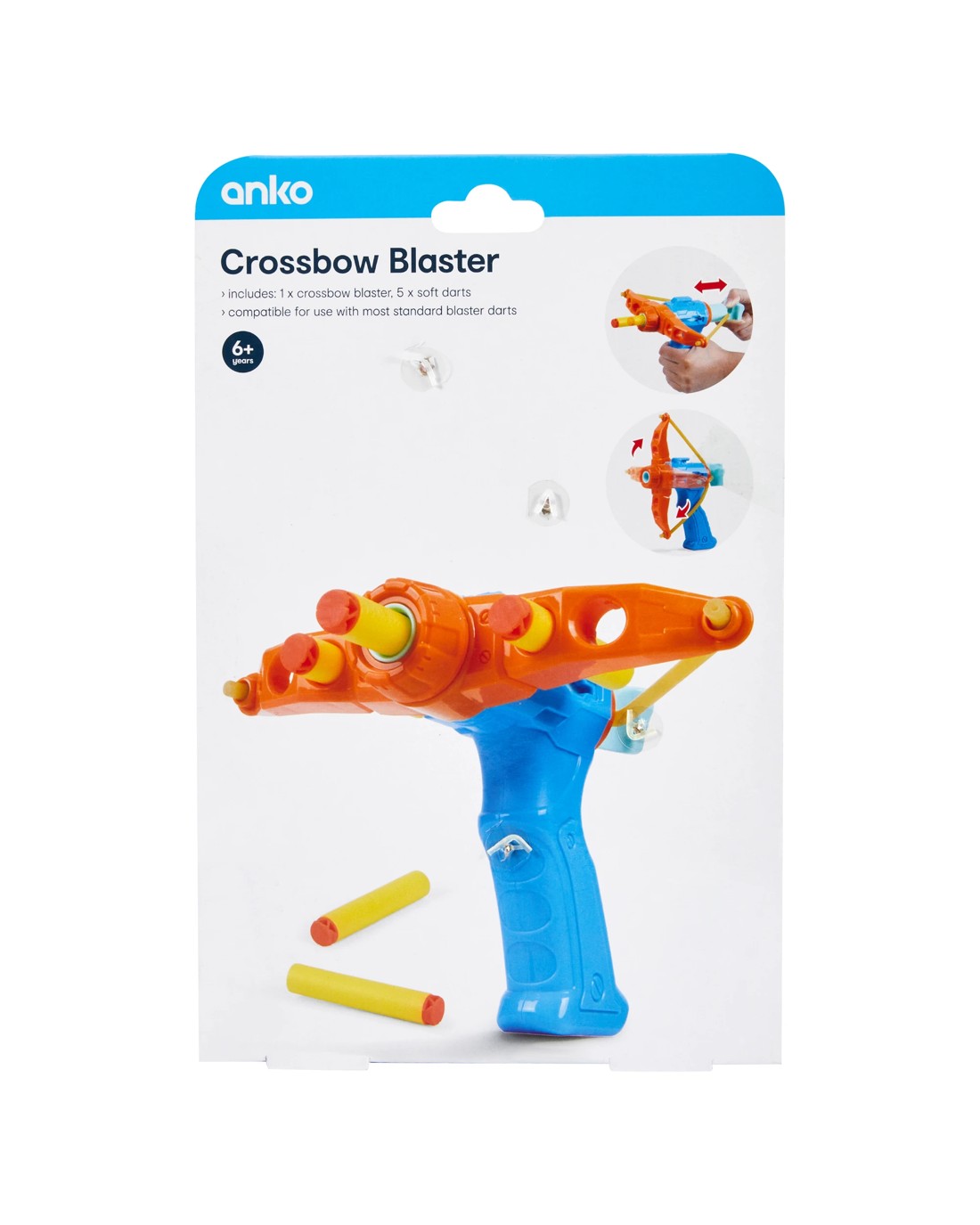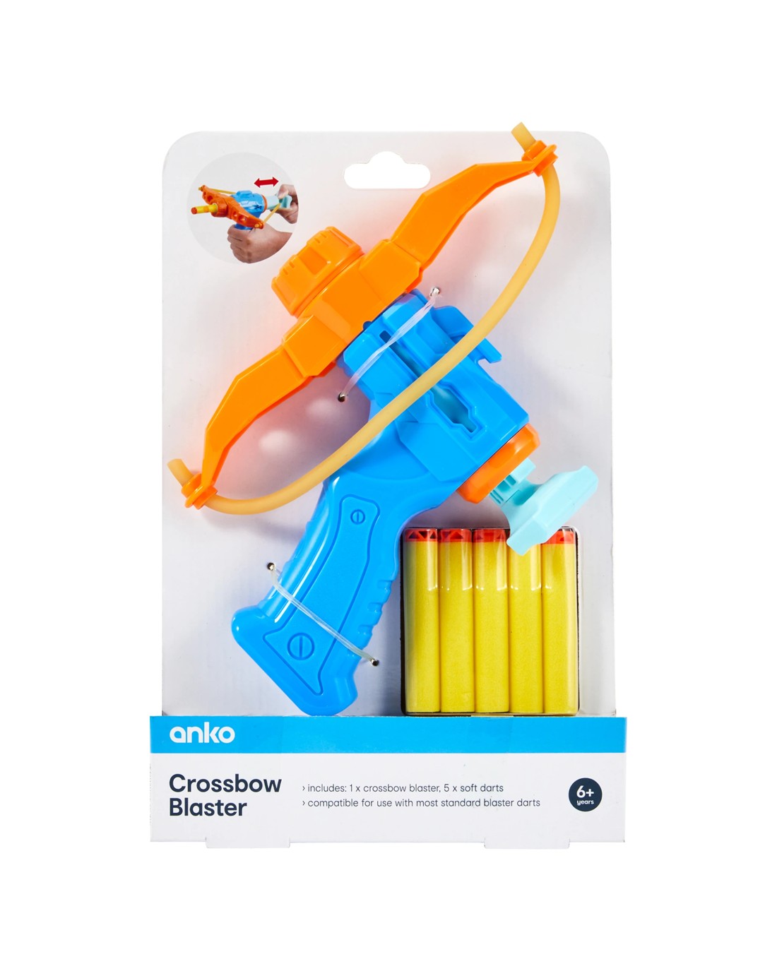 - Includes 1 x crossbow blaster and 5 x soft darts