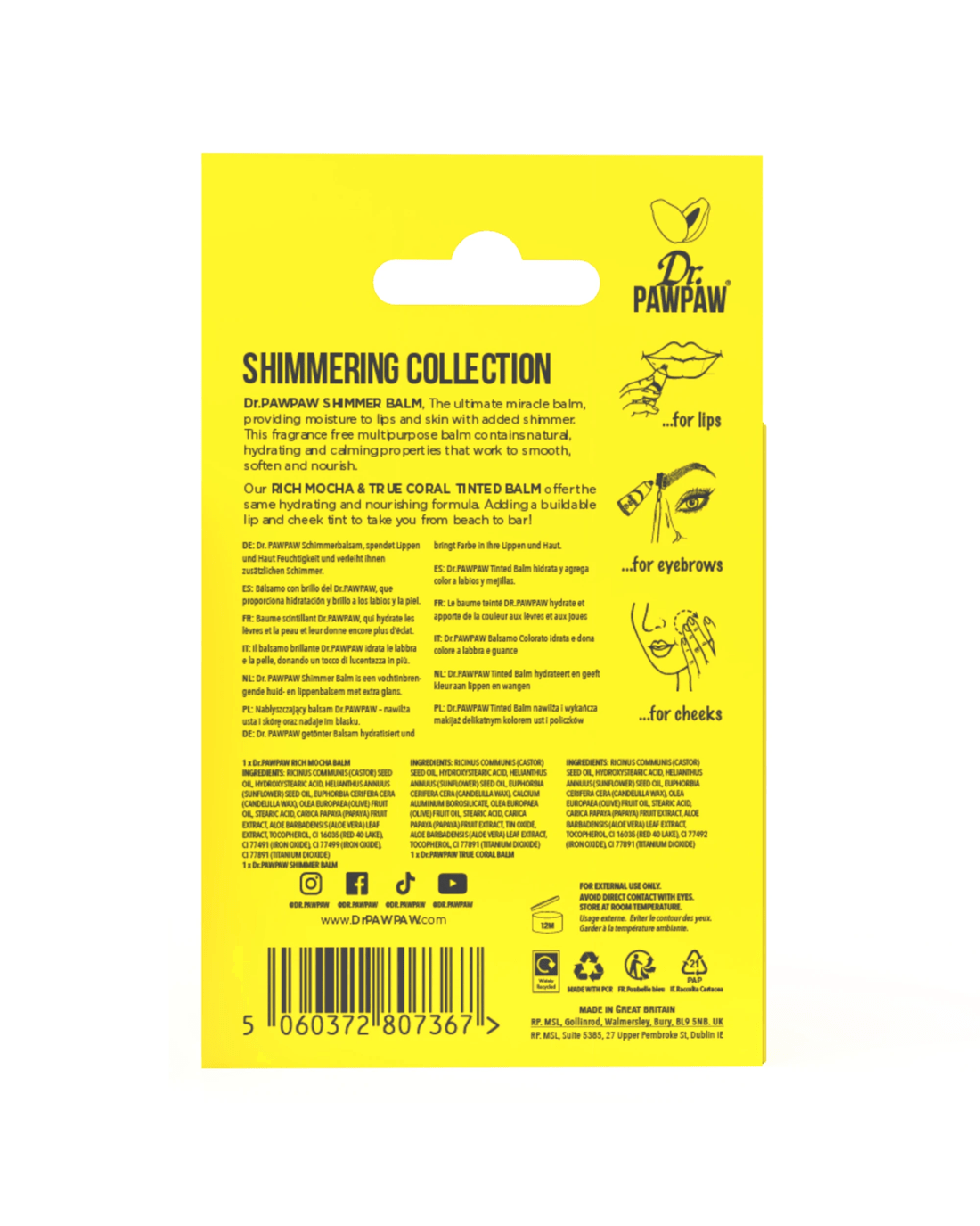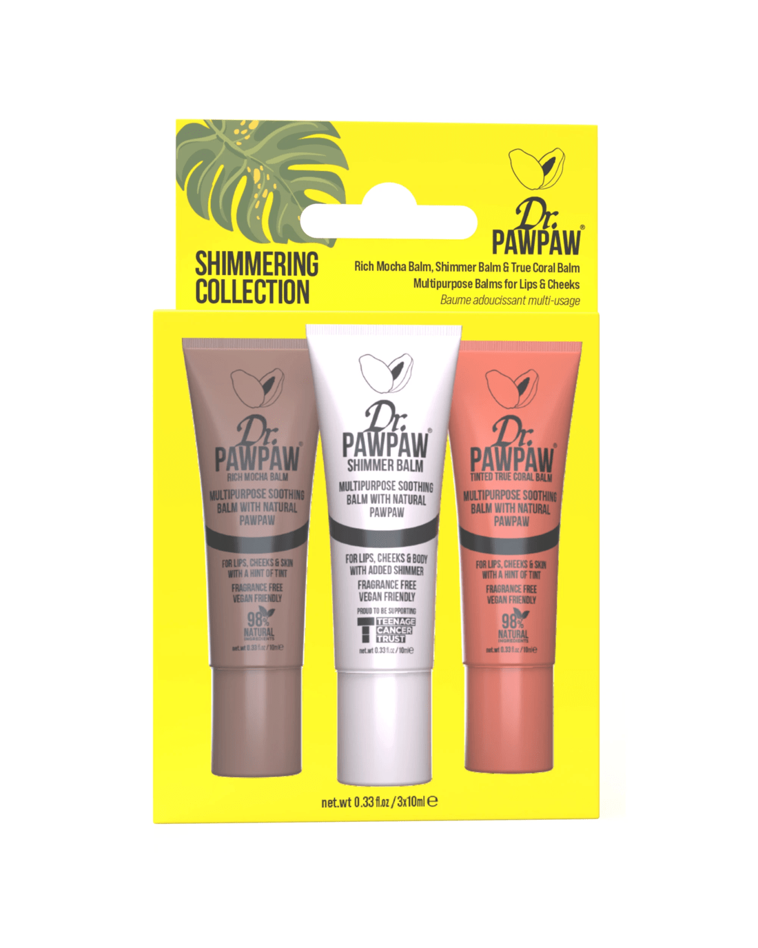 - Dr. PAWPAW Shimmer Balm: The ultimate miracle balm, providing moisture to Iips and skin with added shimmer. This fragrance-free multipurpose balm contains natural, hydrating and calming properties that work to smooth, soften and nourish