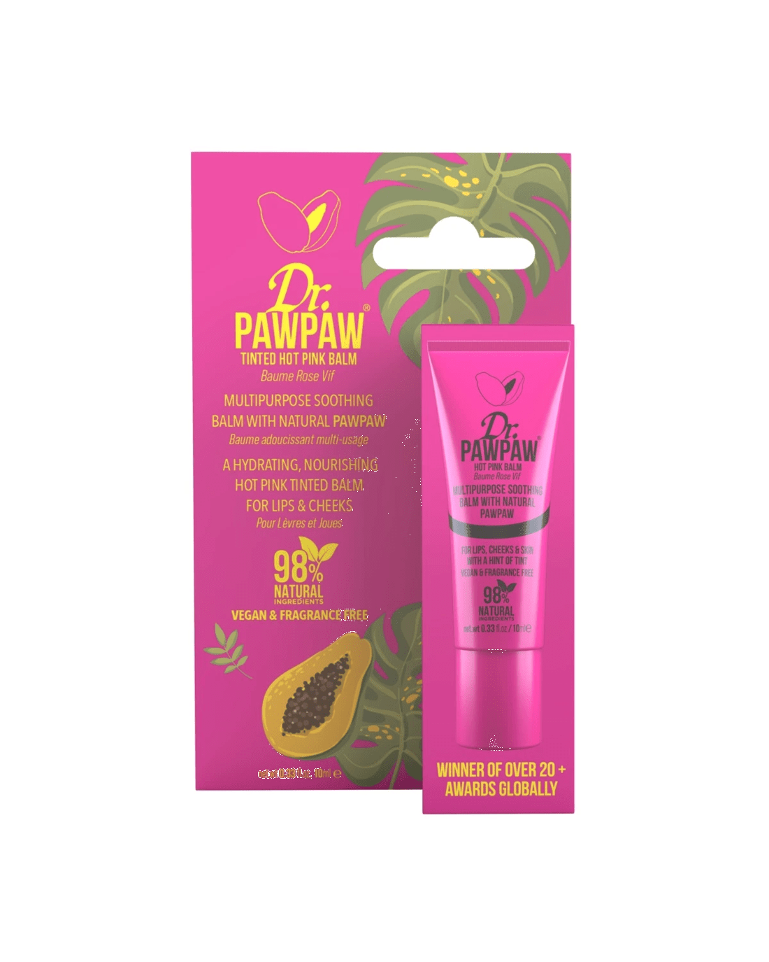 Dr. PAWPAW Tinted Hot Pink Balm can be used in a variety of ways on the lips, cheeks and eyes. Instantly brighten your complexion with this buildable pop of colour, perfect for day-to-night looks.