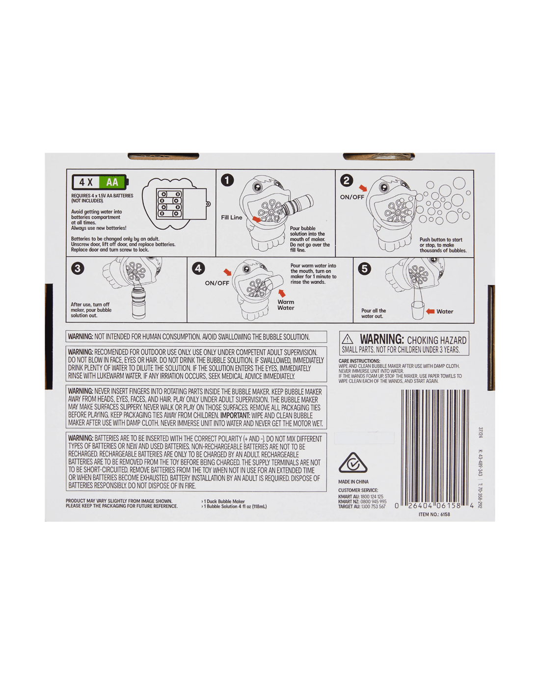 - Bubble solution: 118ml / 4fl oz.