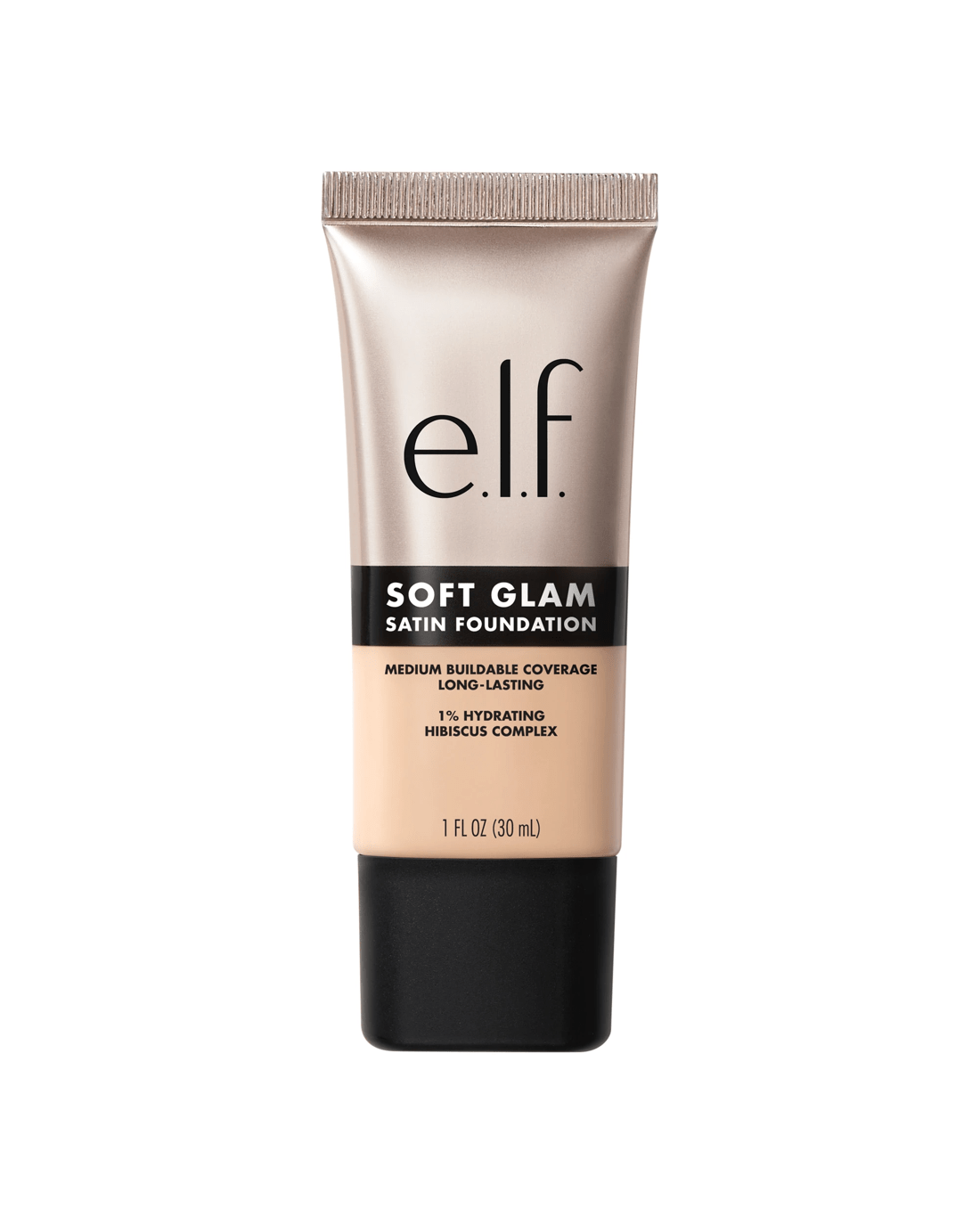 The e.l.f. Soft Glam Satin Foundation is a long-lasting, hydrating liquid foundation that delivers just right, medium buildable coverage and a satin finish.