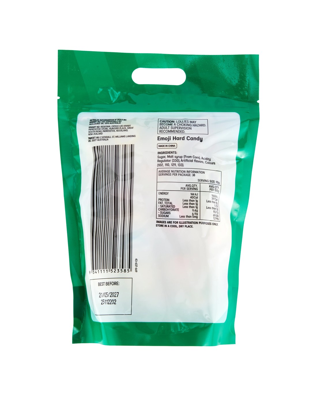 Caution: Lollies may become a choking hazard. Adult supervision recommended.