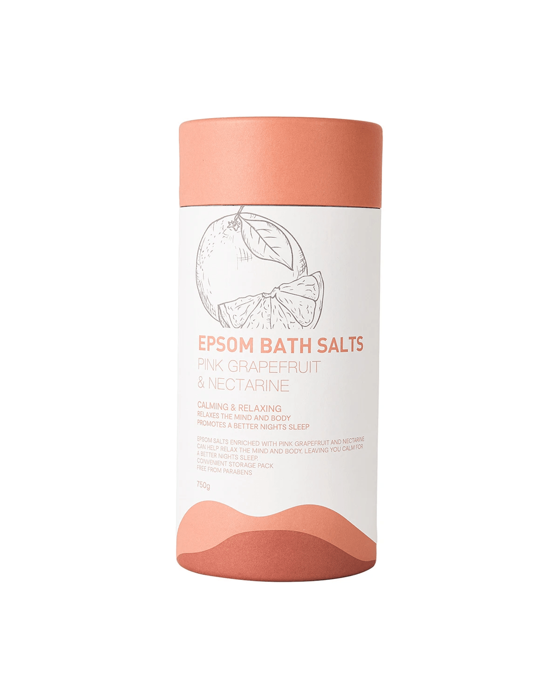 Epsom salts, enriched with pink grapefruit and nectarine, help relax the mind and body, leaving you calm for a better night's sleep.