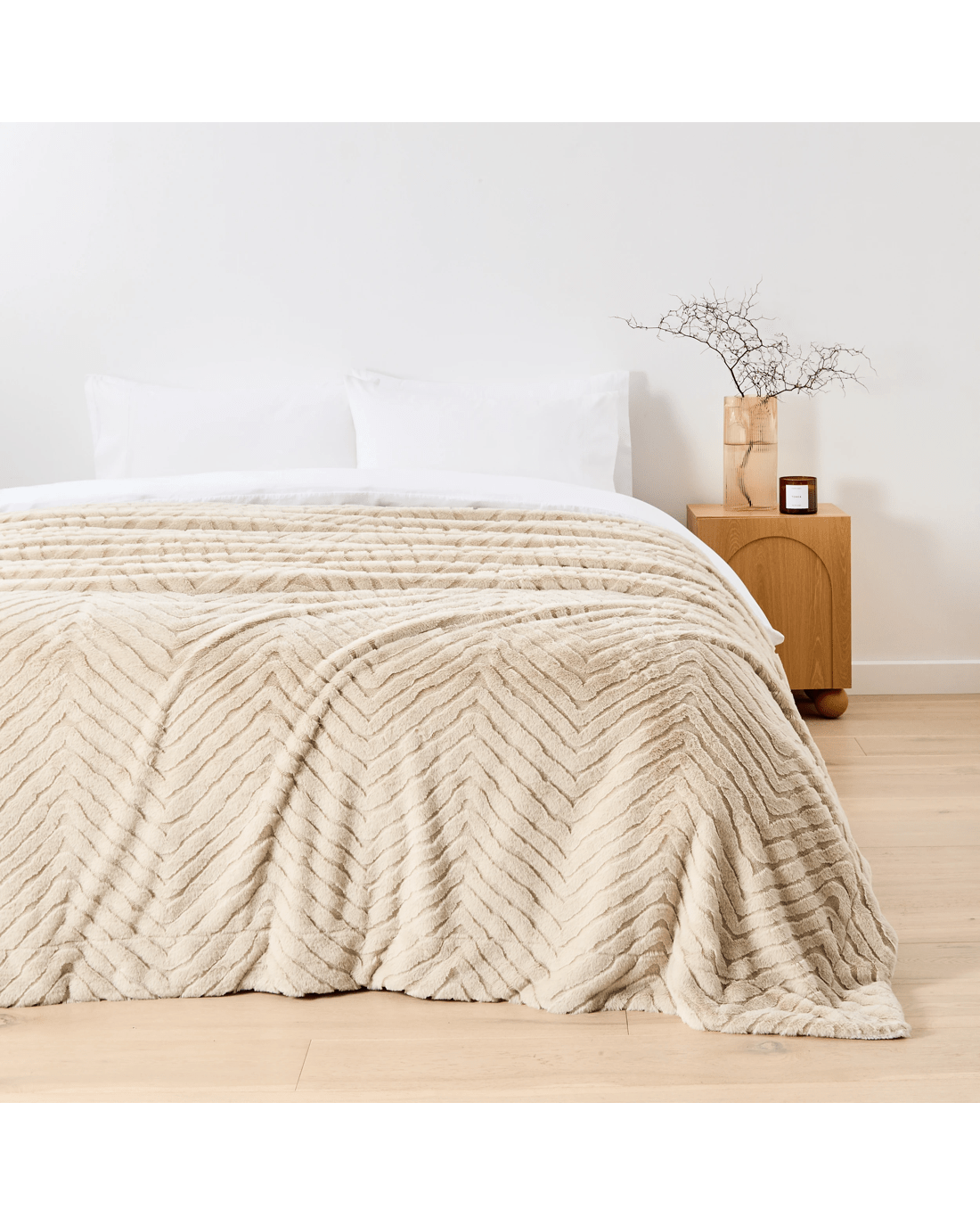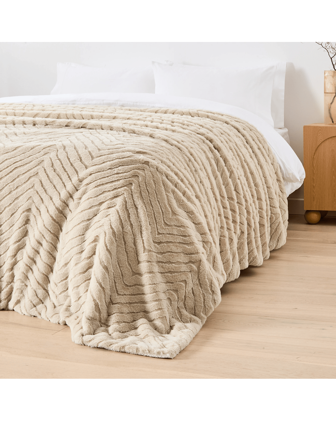 This Faux Fur Blanket is crafted from soft, plush fabric, its smooth texture and subtle sheen create a warm, luxurious atmosphere while ensuring year‑round comfort for restful sleep.