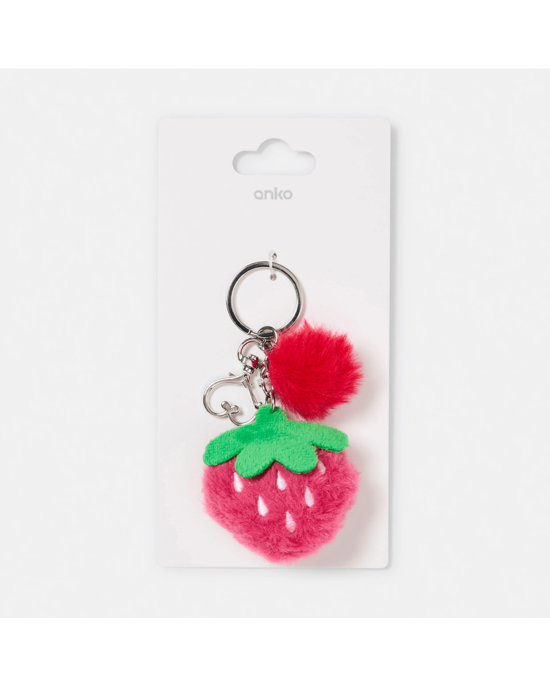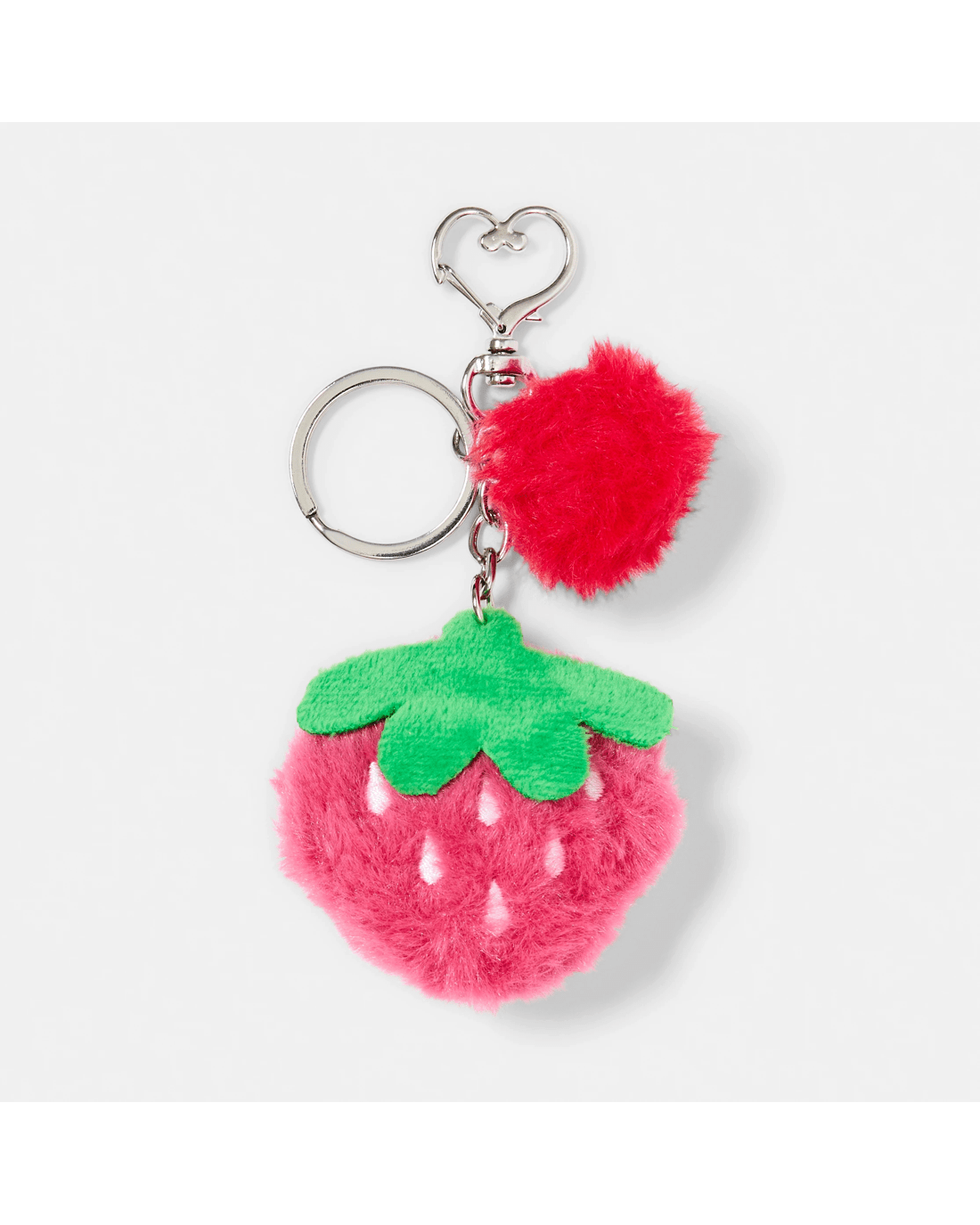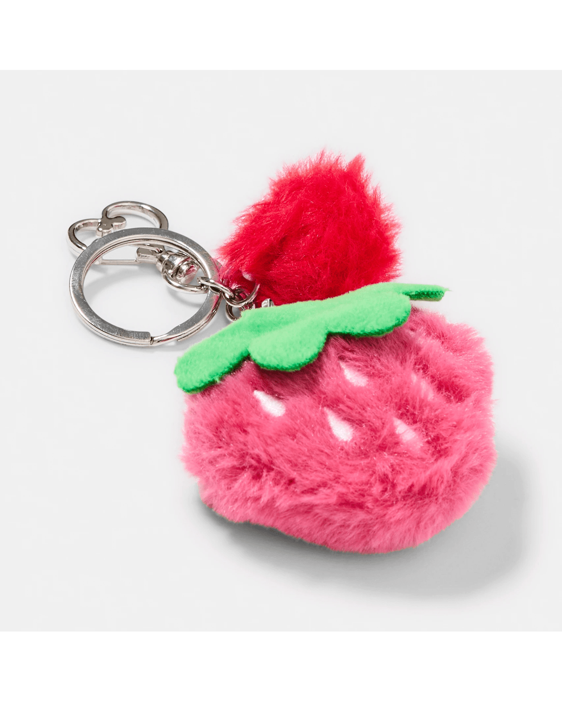 Fluffy Strawberry Keyring - Silver Tone and Pink