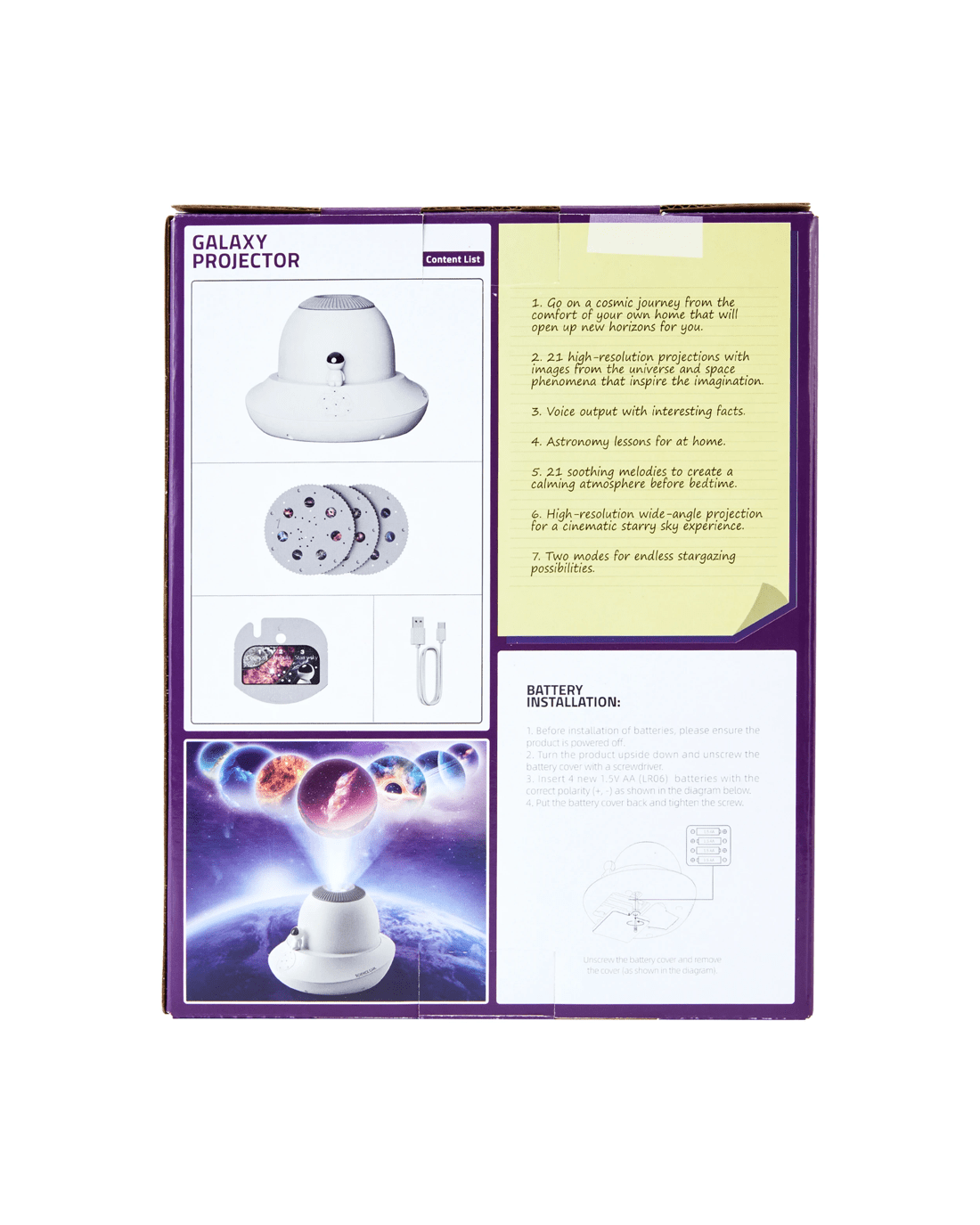 - Includes 1 x projector, 3 x slides, 1 x projection disc and 1 x USB type-C