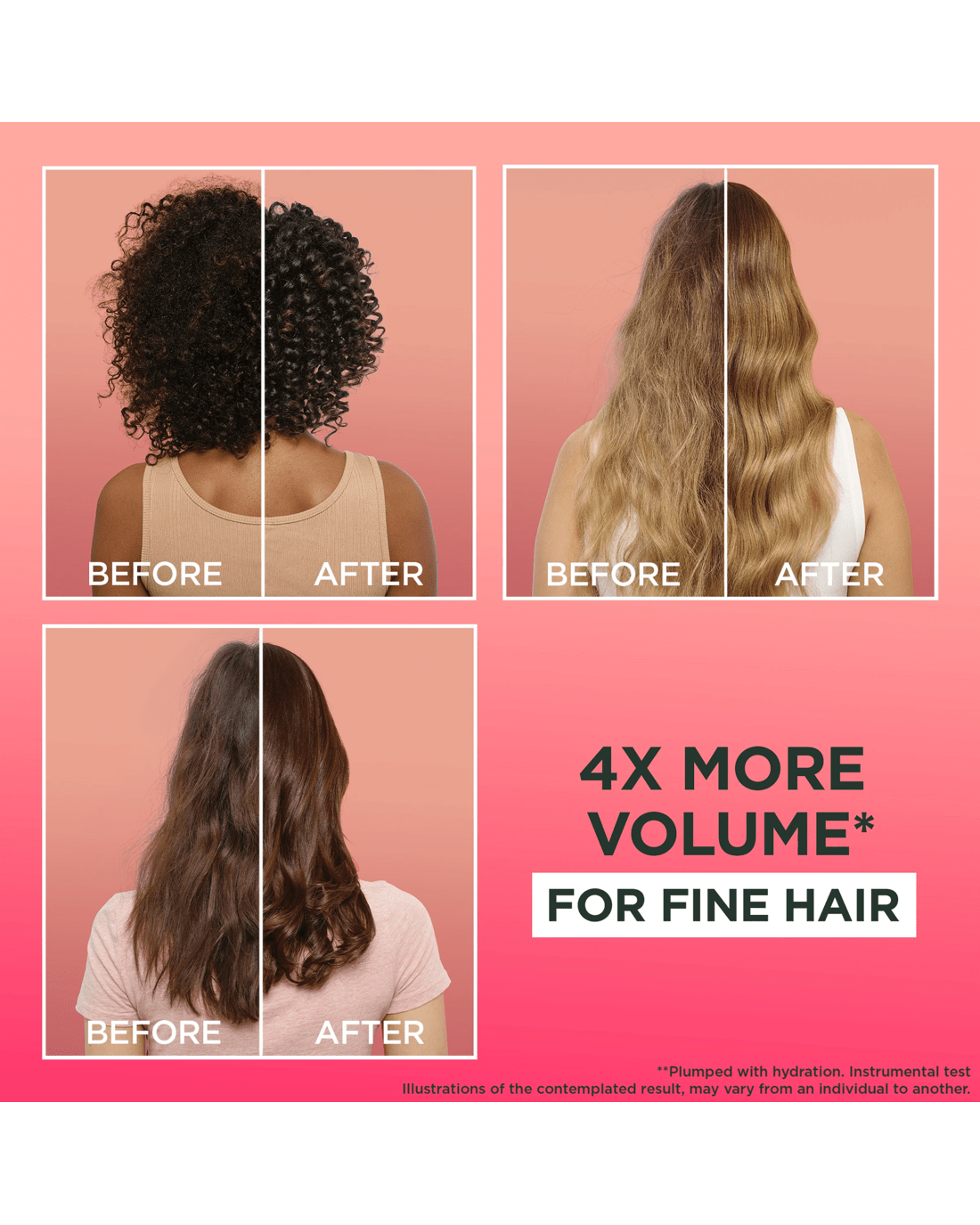- As a mask: Apply on wet hair, leave for 1 minute and rinse out thoroughly, to give your fine hair full volume.